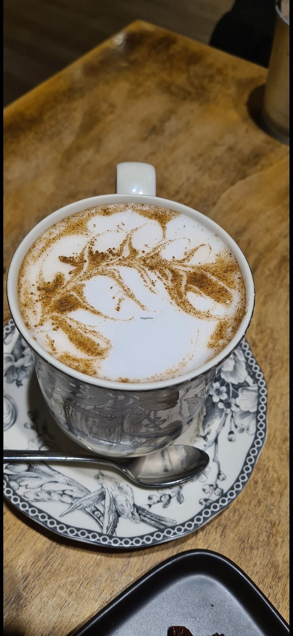Such a nice place, a beautiful design, amazing and kind service and they make matcha lattes and have almond milk as a vegan option. They have vegan brownies and cookies available! Really recommended!