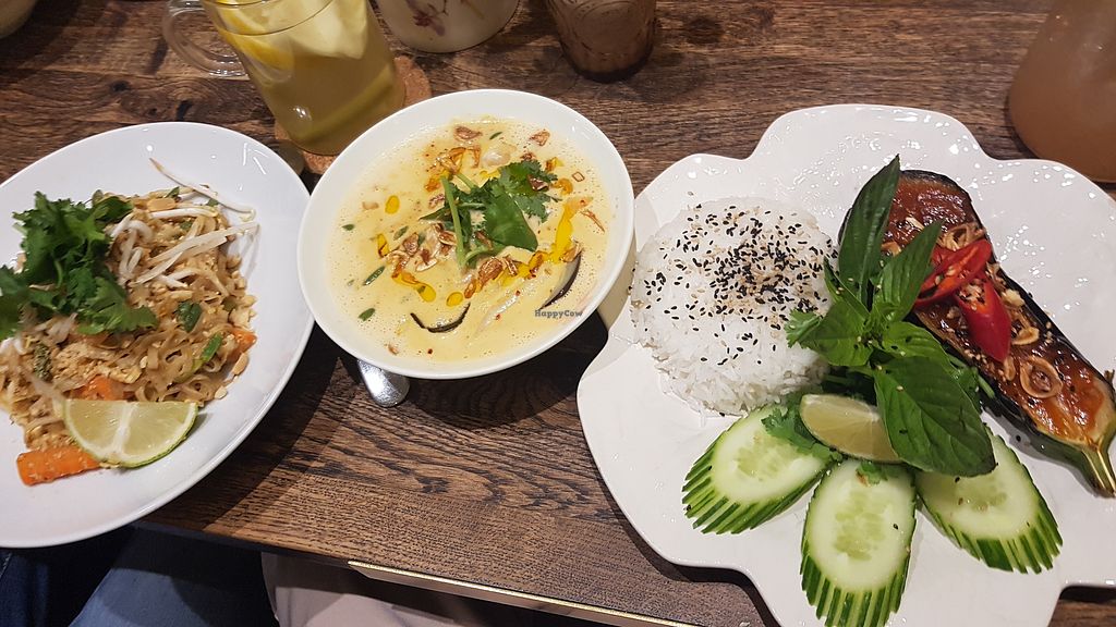 Serves meat, vegan options available. Modern Thai restaurant, Vegan section of mains in menu Open Mon-Sun 12:00-10:00.