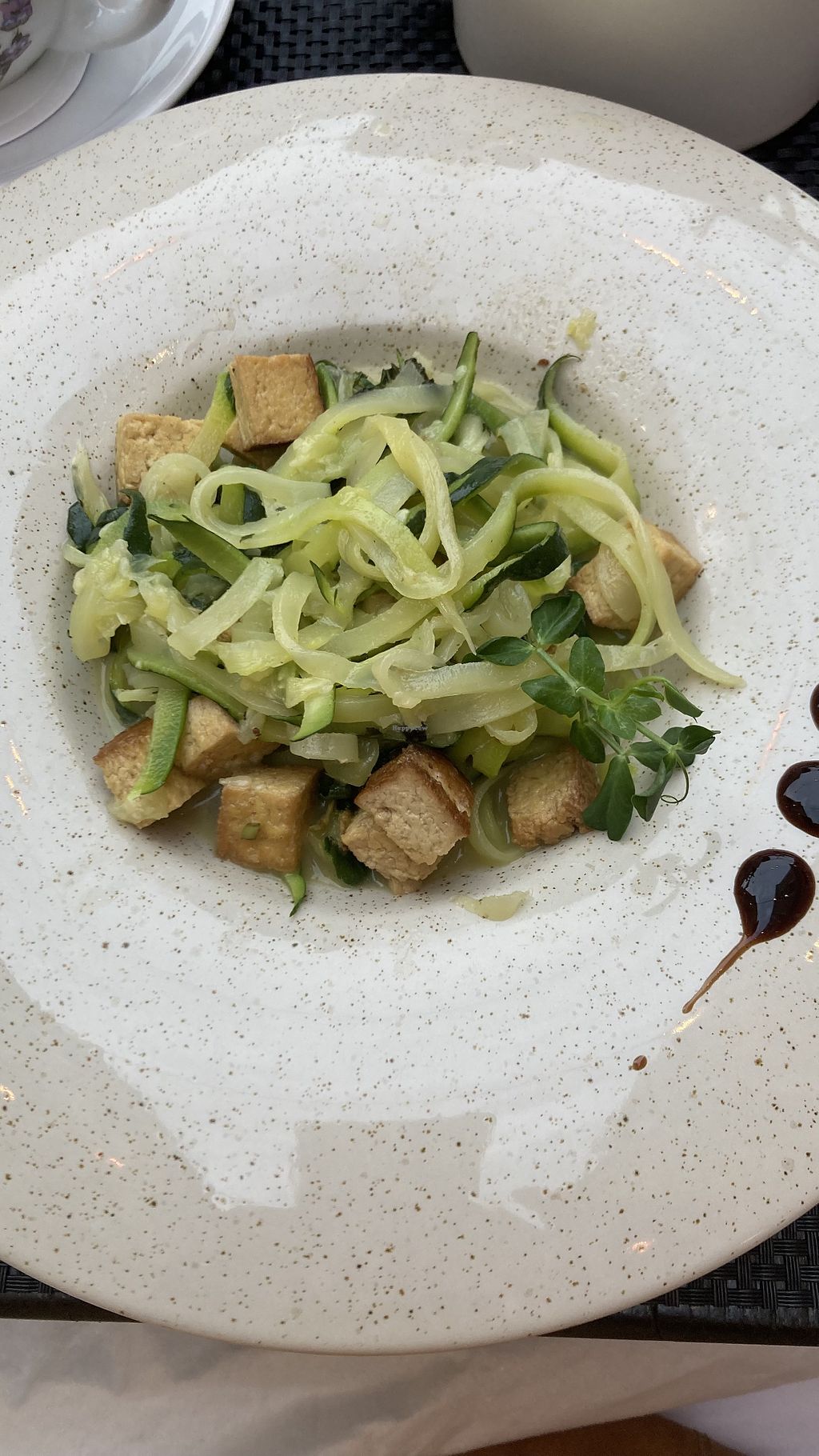 Top dat er vegan opties zijn voor zowel voorgerecht, hoofdgerecht als zelfs 1 vegan dessert, maar de porties zijn heel klein. De tomatensoep was goed van smaak maar de courgettepasta met tofu was flauw en eentonig, wat extra smaakmakers hadden welkom geweest. Het vegan dessert (appeltaart) was een normale portie en lekker!