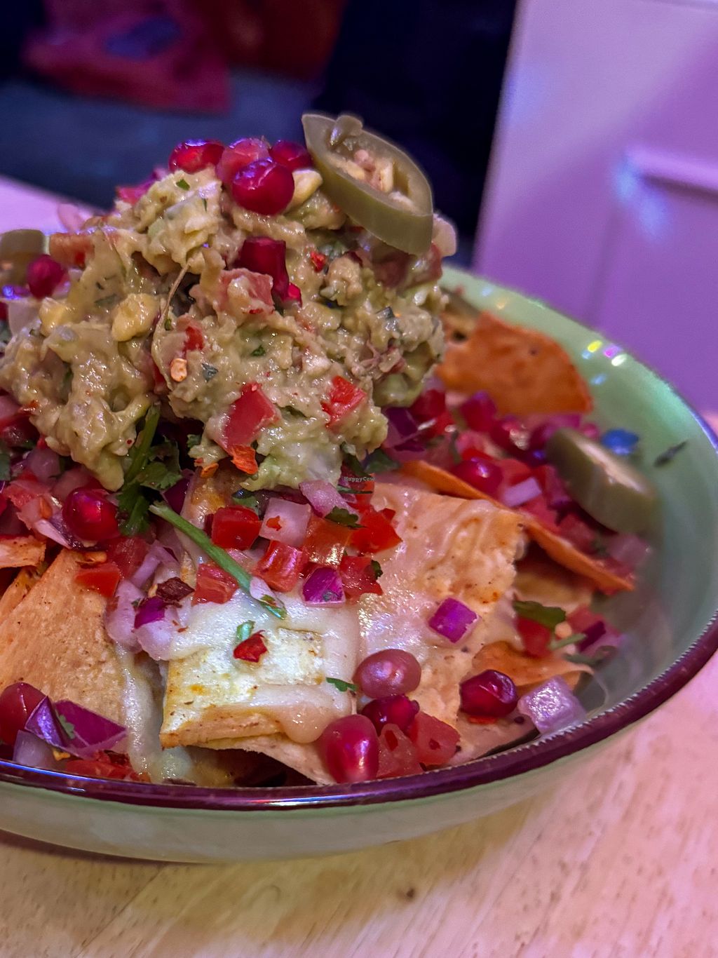 Vegan restaurant offering dishes like quesabirria tacos (vegan birria-style tacos), loaded nachos, “birria wingz” (plant-based wings), fajitas with barbacoa seitan, and burritos, along with sides like guacamole and smashed potatoes. Open Mon-Thu 16:00-22:00, Fri-Sun 12:00-22:00.
