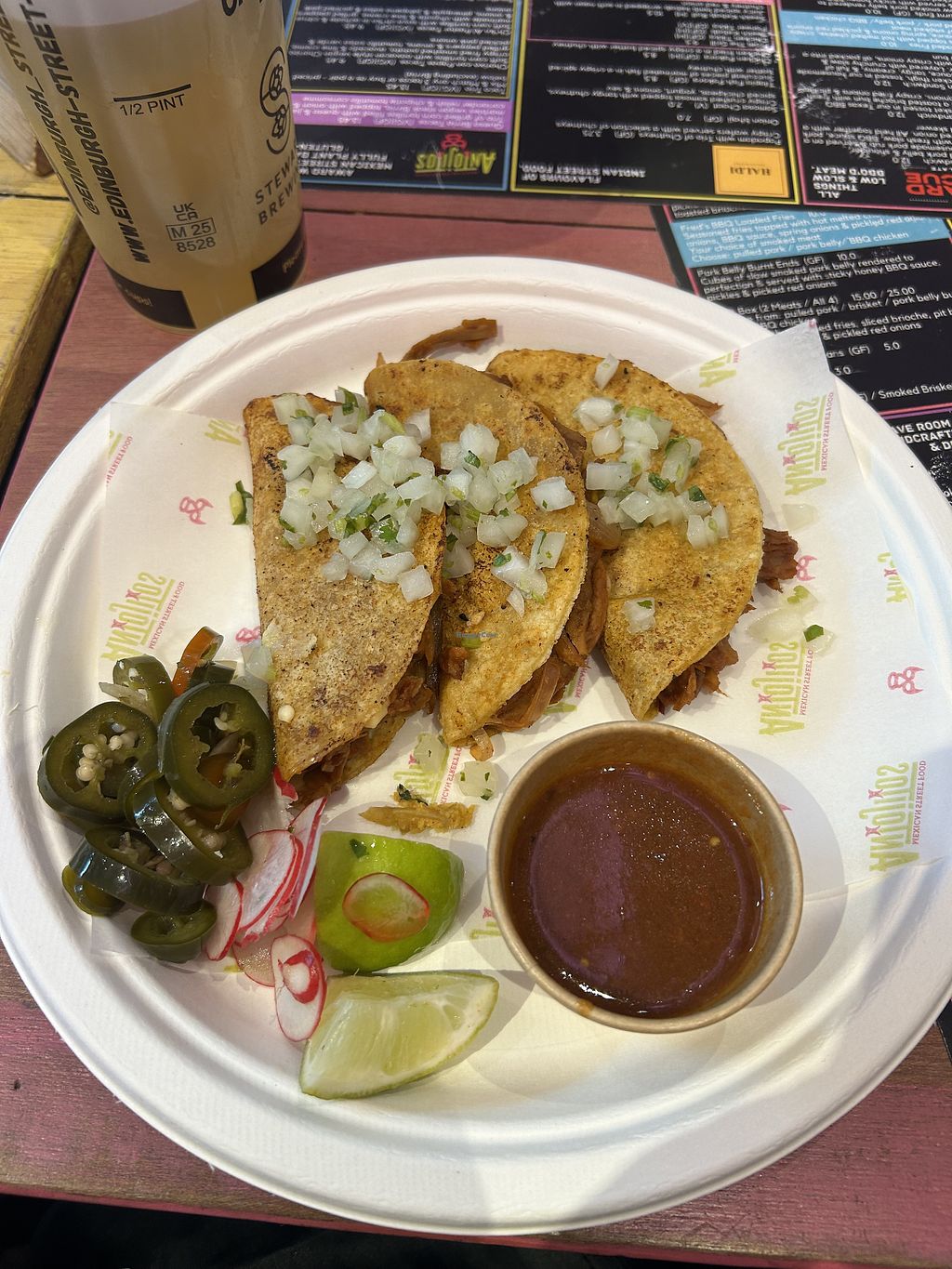 Nice vegan tacos. I especially enjoyed southers fried pineapple and vegan chorizo one. Corn ribs were also very nice. It's not amazing but it's a very solid option and definitely worth a try in Edinburgh.