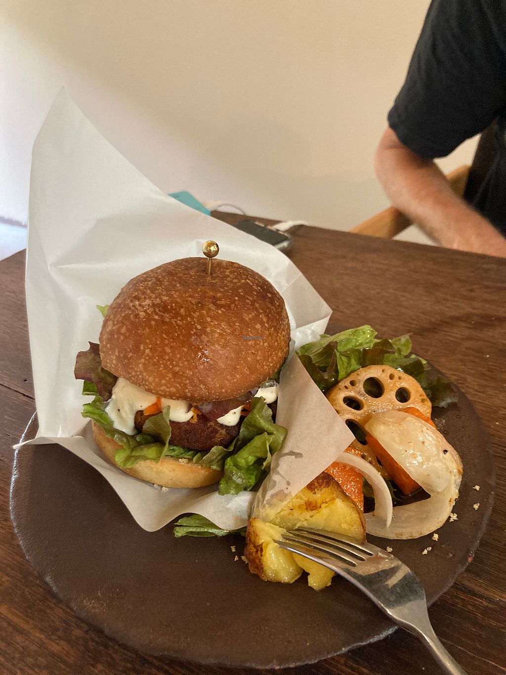We ate a melon bun and sweet potato bread which were served with some soy yogurt. Absolutely delicious. And shared the burger which came with some sides - it was vegetable in based, I think, unusual and tasted great. Everything had a distinct flavour, something that was unique.