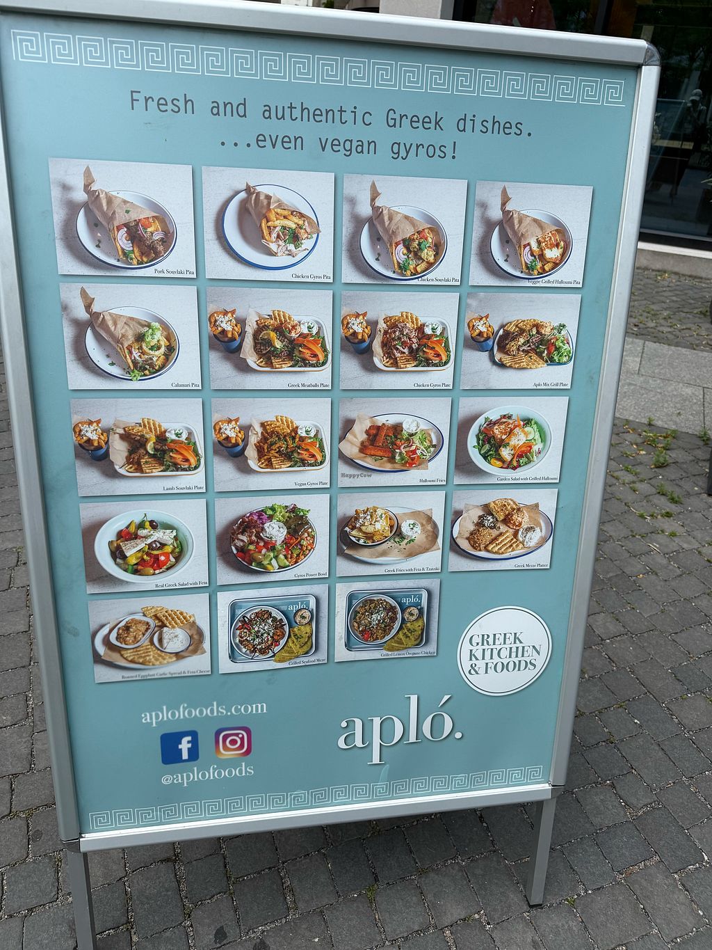 Serves meat, vegan options available. Second location of Aplo Greek Kitchen offering a variety of veganized Greek dishes, including vegan gyros, vegan gyros plate, vegan Greek butter beans salad, and vegan/veggie cauliflower. Open Mon-Sun 12:00-21:00.