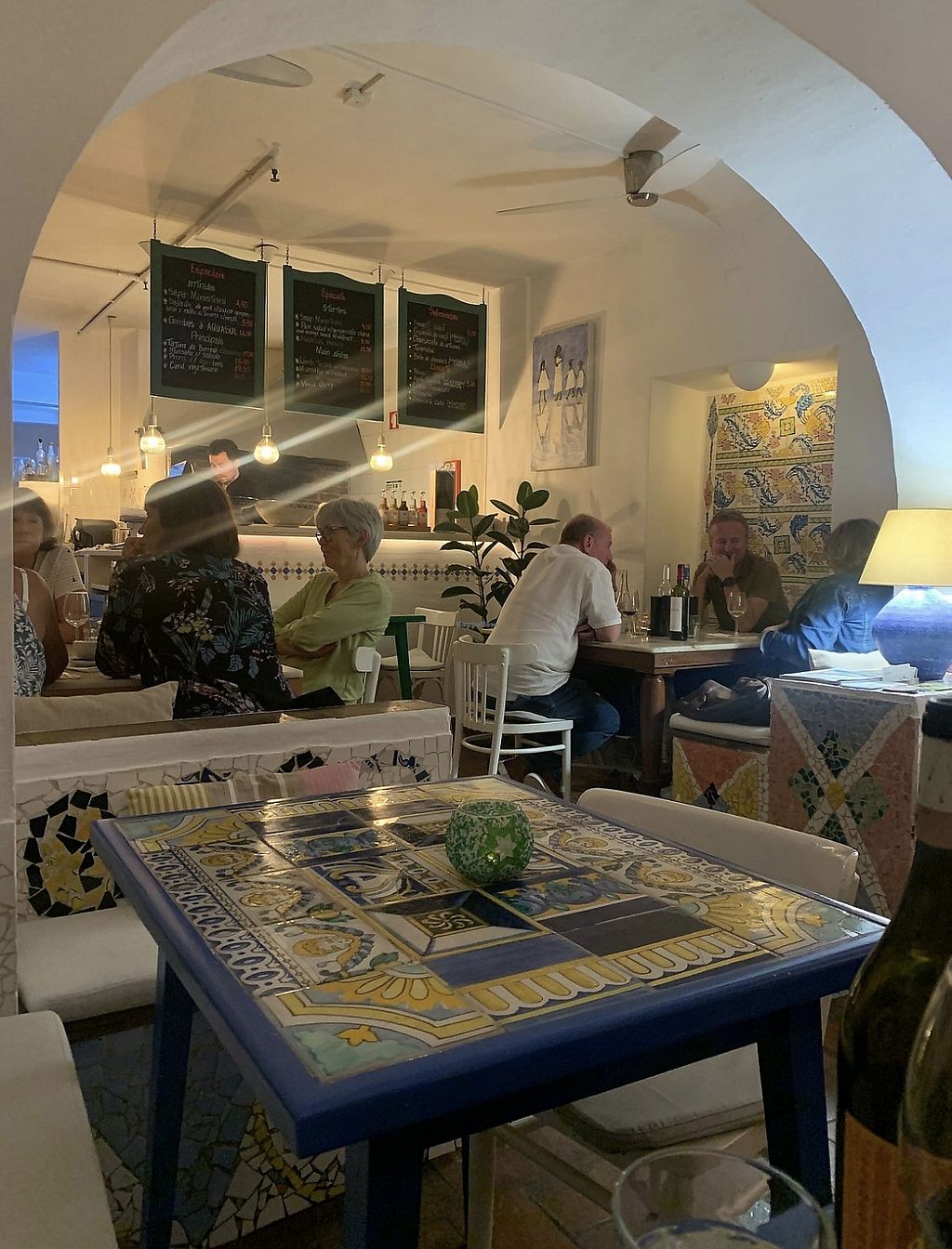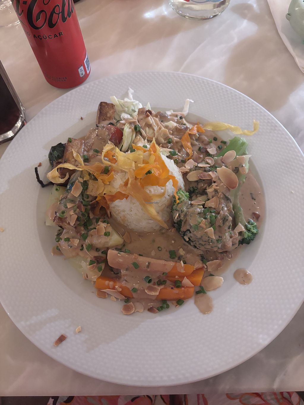 I ate here as the only vegan in a group of four. There were two options, the vegetable curry, or the vegetarian gado gado specifically without egg! I had the gado gado and it was absolutely delicious, it was a serving of rice with broccoli, carrots, cabbage, potatoes, some spinach and tofu all covered in a wonderful peanuty sauce. The chips are cooked in sunflower oil, so I had some chips too. It was a very pretty restaurant with lots of watercolour paintings of dogs and mosaic tiles all over the walls. The location is fabulous, it’s a minute or two from the centre. Will definitely be returning.