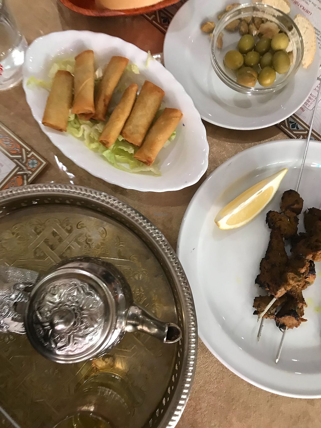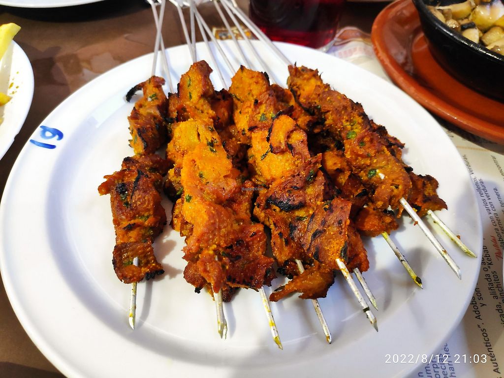 Serves meat, vegan options available. Moroccan-Arabic cuisine. Reported many dishes can be prepared vegan - for example the pinchito de soja is a soy spit. When ordering be sure to ask if the serving is a side dish included in the menu or not.