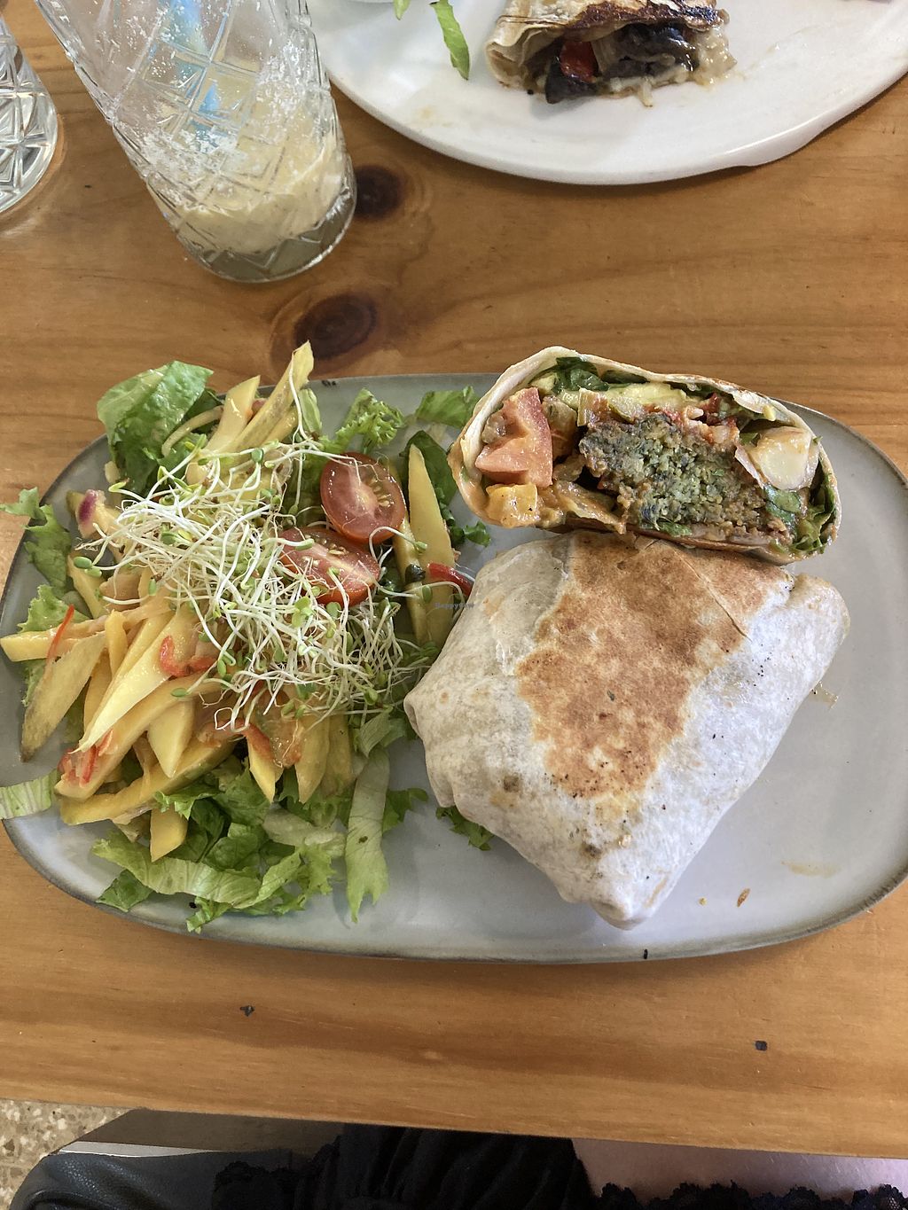Pros: Falafel wrap, Mango fries (on the side), Delicious