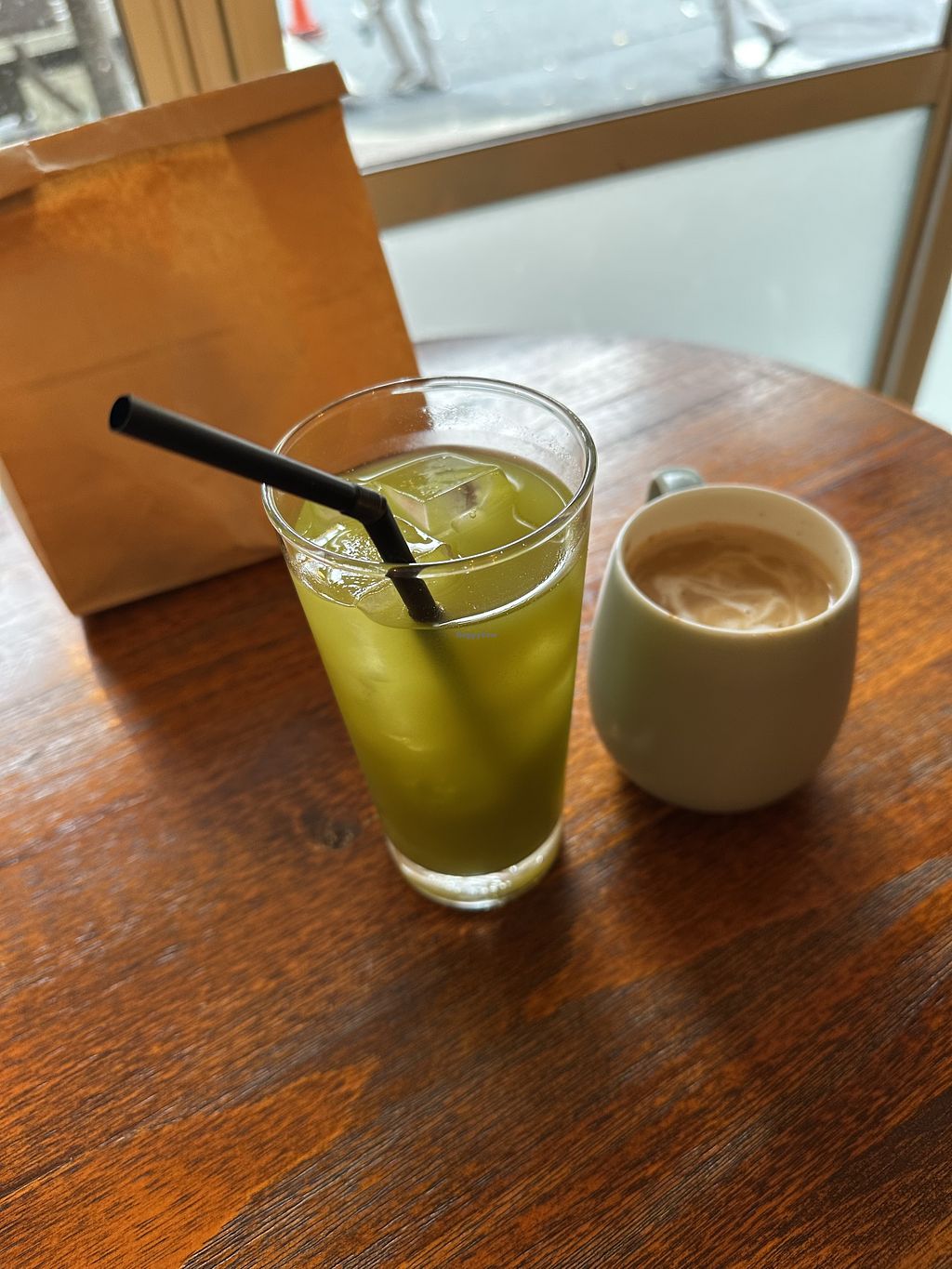 Offered plant milk, though it was kind of wiped off the menu. Husband got almond milk despite that. Earl Grey is made with Japanese green tea instead of black.