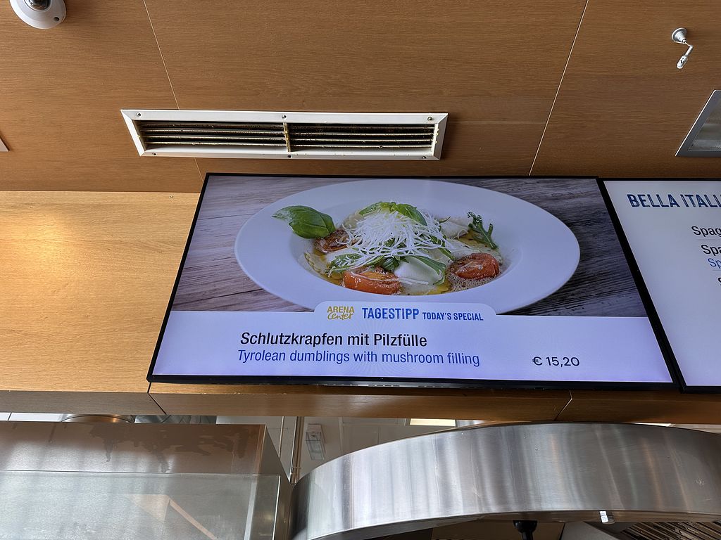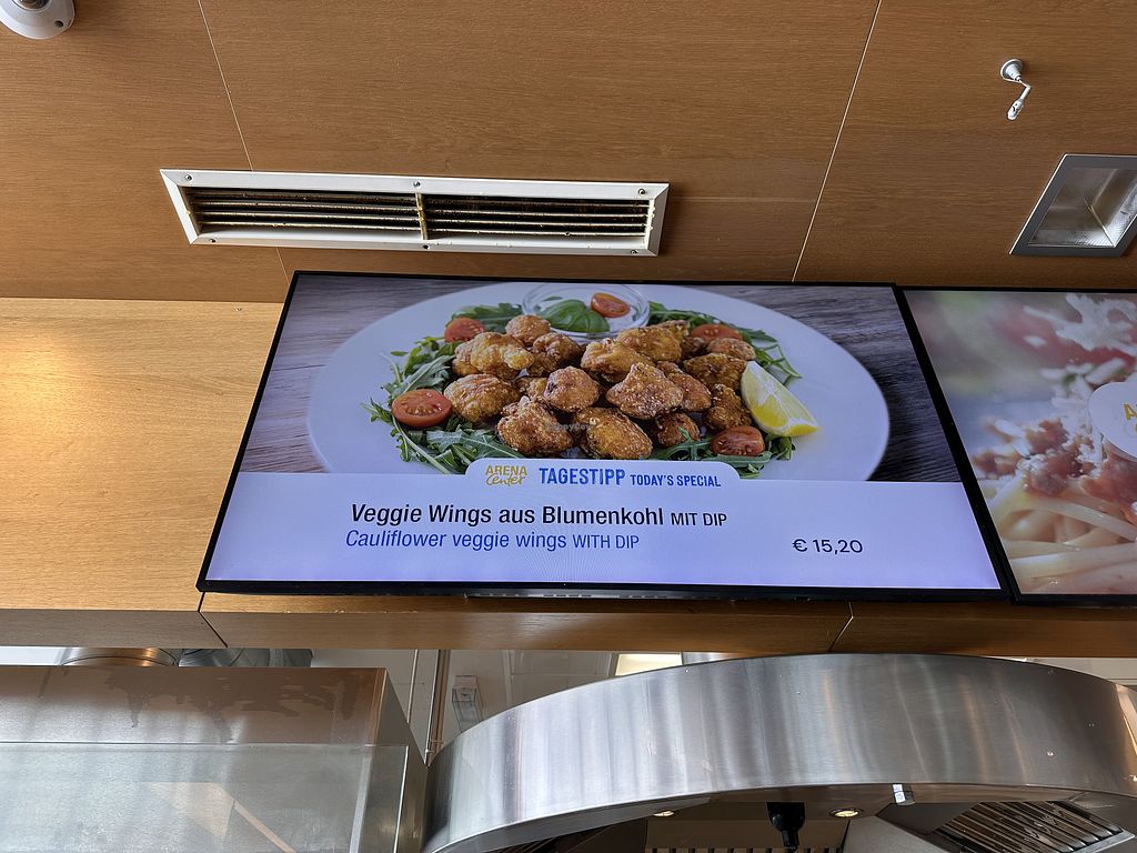 Es gibt einen veganen Burger, Blumenkohl Wings, vegane Schultzkrapfen und Spagetti mit Tomatensauce. Alles klar auf gekennzeichnet. Der Green Oat Burger ist etwas experimentell mit Apfelscheiben, Rucola und Paprikasauce, aber recht lecker. Die Blumenkohl Wings vom Nachbartisch sahen seehr gut aus.