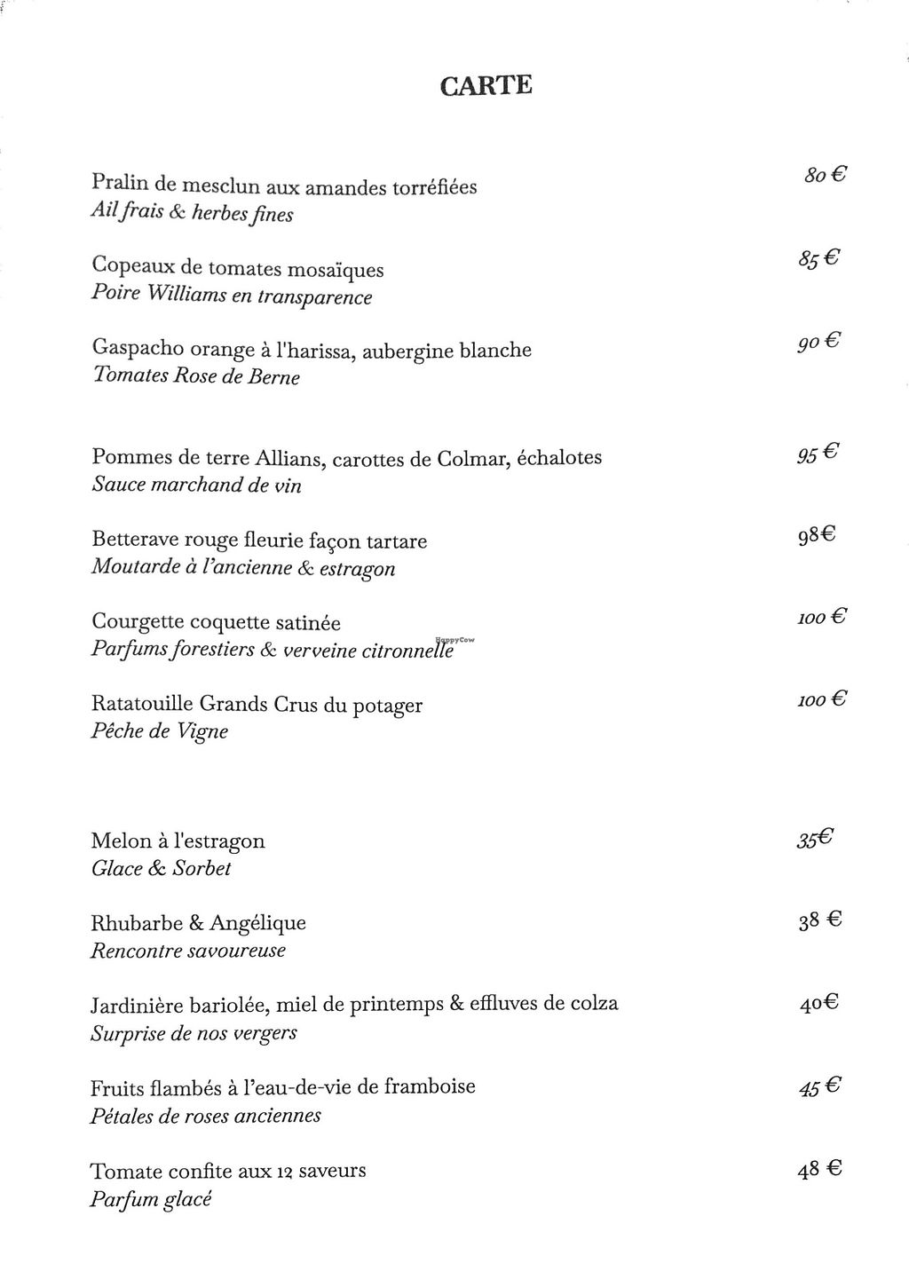 Vegetarian 3 Michelin star haute cuisine restaurant offers a 12 course vegetarian degustation menu made from fresh fruit and vegetables picked same day from Alain Passard's extensive private organic gardens; uses no pesticides or chemical fertilizer. Some of the 12 course menu is most likely vegan, but is not mentioned on the menu, so vegans please inquire when booking reservations. Also, a la carte dishes may possibly be vegan, so please inquire about that also. Has an elegant and welcoming ambiance with a la carte options available. It is a very popular restaurant, so booking well in advance is necessary. Open Mon-Fri 12:00-14:30.