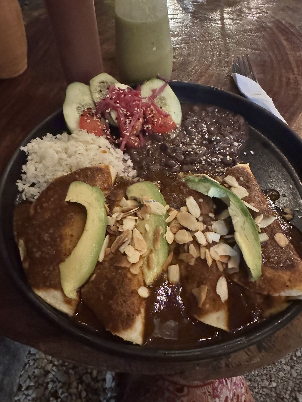 Some of the most amazing vegan Mexican food I have ever had. Traditional vegan dishes (enmoladas, aguachiles, chile rellenos, etc) and everything was absolutely delicious. We ate here 3 times during our stay in Holbox and tried as many dishes as possible. The horchata was perfect, the tinga de jamaica was incredible, and I loved the mushroom aguachile especially. the service is so kind and warm and the place is really cute—such great ambiance. If you are veg / vegan you cannot miss this spot. They also have breakfast/ brunch but sadly we didn’t make it for that. It was cash only when we went, closed Mondays, and the address is different than what is listed here but if you walk around look for a sign on a nearby corner that will point you to the right direction. I hope I can go back someday soon! Incredible!!