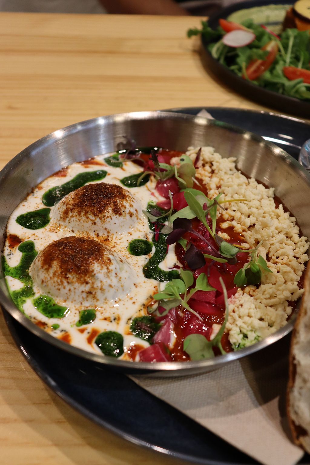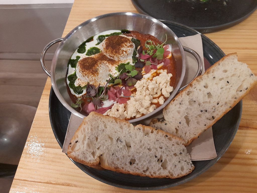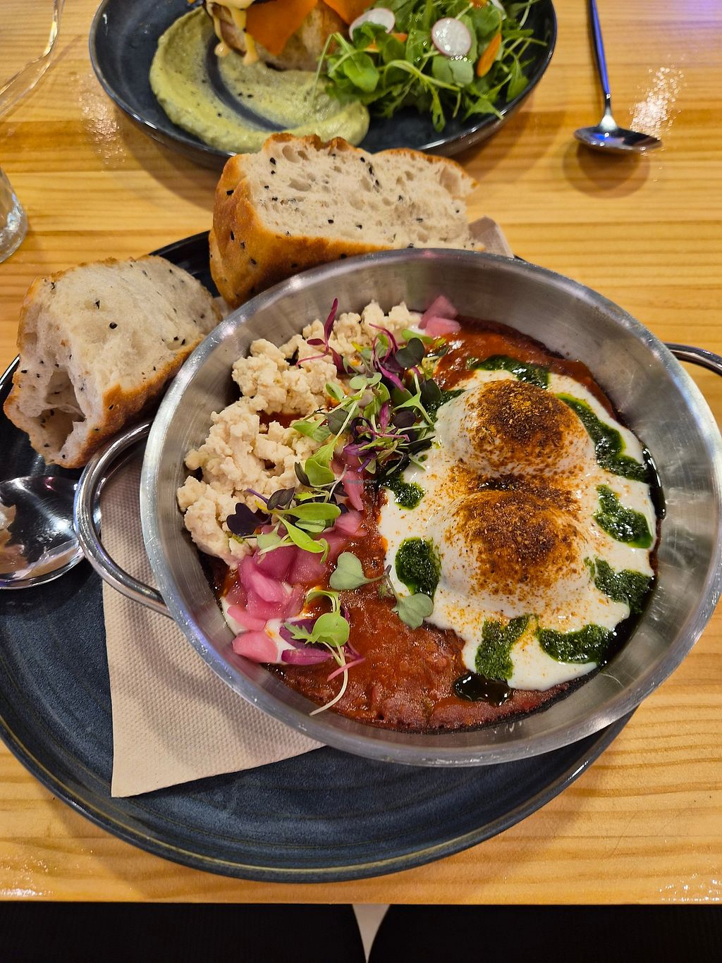 I actually can't believe how much they tasted and felt like eggs! I had the shakshuka which was nice and I liked the focaccia. Definitely one if you miss eggs with runny yolk.