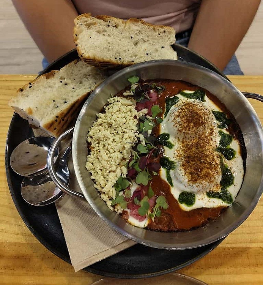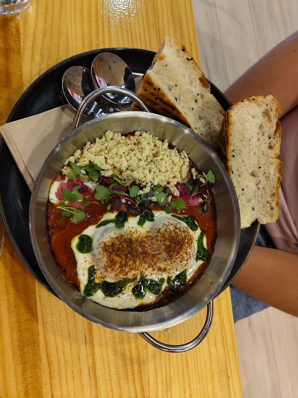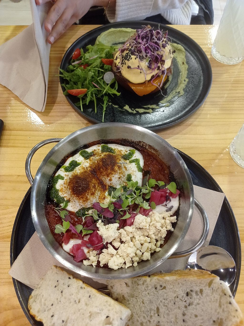 I actually can't believe how much they tasted and felt like eggs! I had the shakshuka which was nice and I liked the focaccia. Definitely one if you miss eggs with runny yolk.
