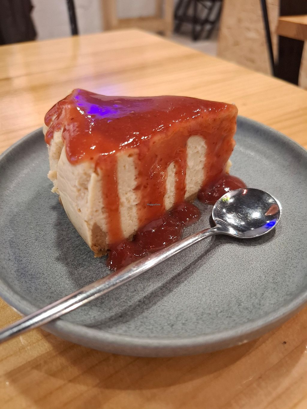 I stumbled on this place on the walk down from Montjuic and so happy I did. The menu is not huge but the dishes they do are brilliant and clever. I had the shakshouka which had 2 amazing vegan poached "egg" on top which was delightful to pop and dip the delicious bread in. Then had the strawberry cheesecake which I was informed was the top rated in the world and I cannot disagree! Both the guys working there were absolutely lovely and I cannot recommend this place enough.