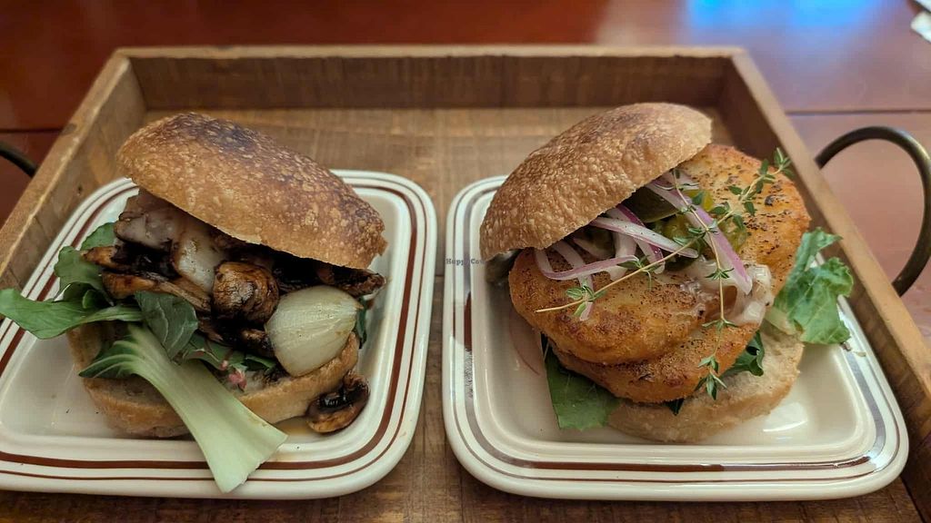 Vegan bakery and café restaurant specializing in wood-fired baked breads, brunch sandwiches, desserts, and cakes. Choices include mushroom & onion sandwich, guacamole -tomato sandwich, and chocolate ganache. First order for sandwiches/food is 11am, baked goods available from opening. Last sandwich/food order is 4pm, baked goods available until closing. Open Mon-Fri 10:30am-6:00pm, Sat 10:30am-7:00pm, Sun 10:30am-6:00pm.