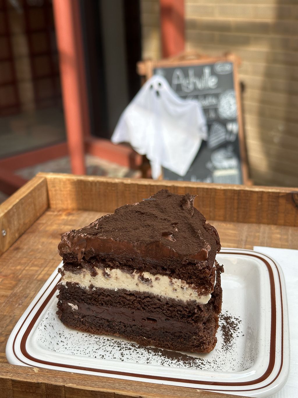 Ashville Bakery was red. Yes red. Fo and check 😝 The coffee was rich flavored, and the the dessert I had was not so sweet which is good for me. I understand their biz stratedgy not telling V or plant-based but wish to see it more proudly to educate people. Next time, I would love to visit to eat foods there too.