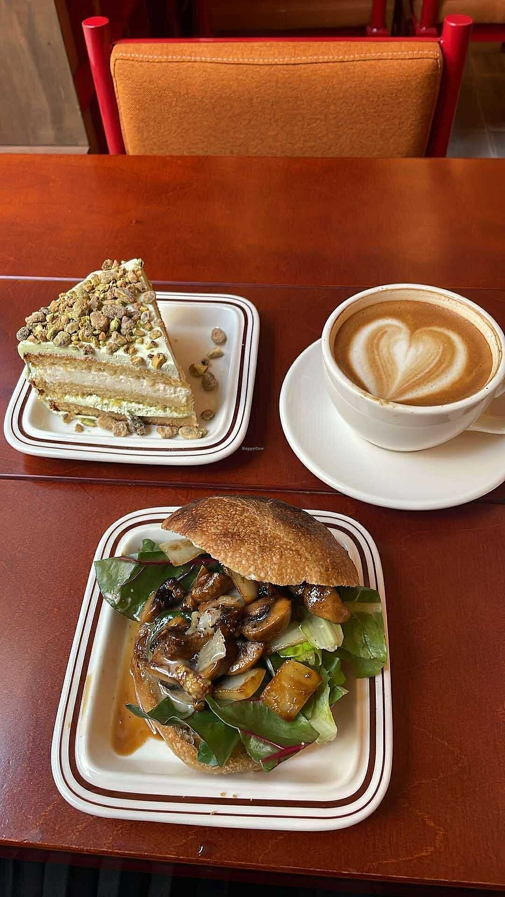 Had a coffee, a (huge) slice of pistachio cake and the mushroom ciabatta. Highly recommend!