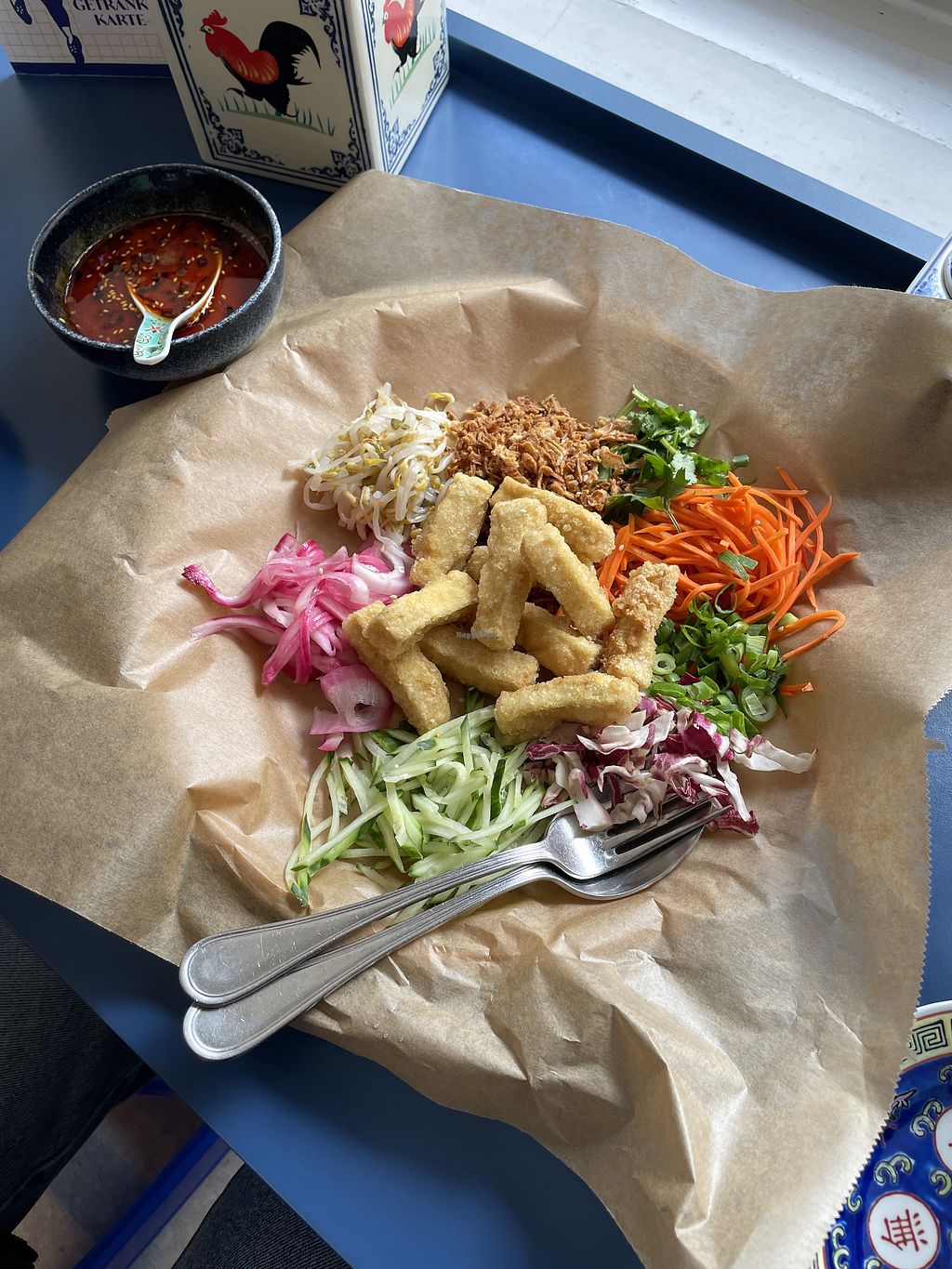 Marinated silk tofu with AWESOME chilidressing and spring onion