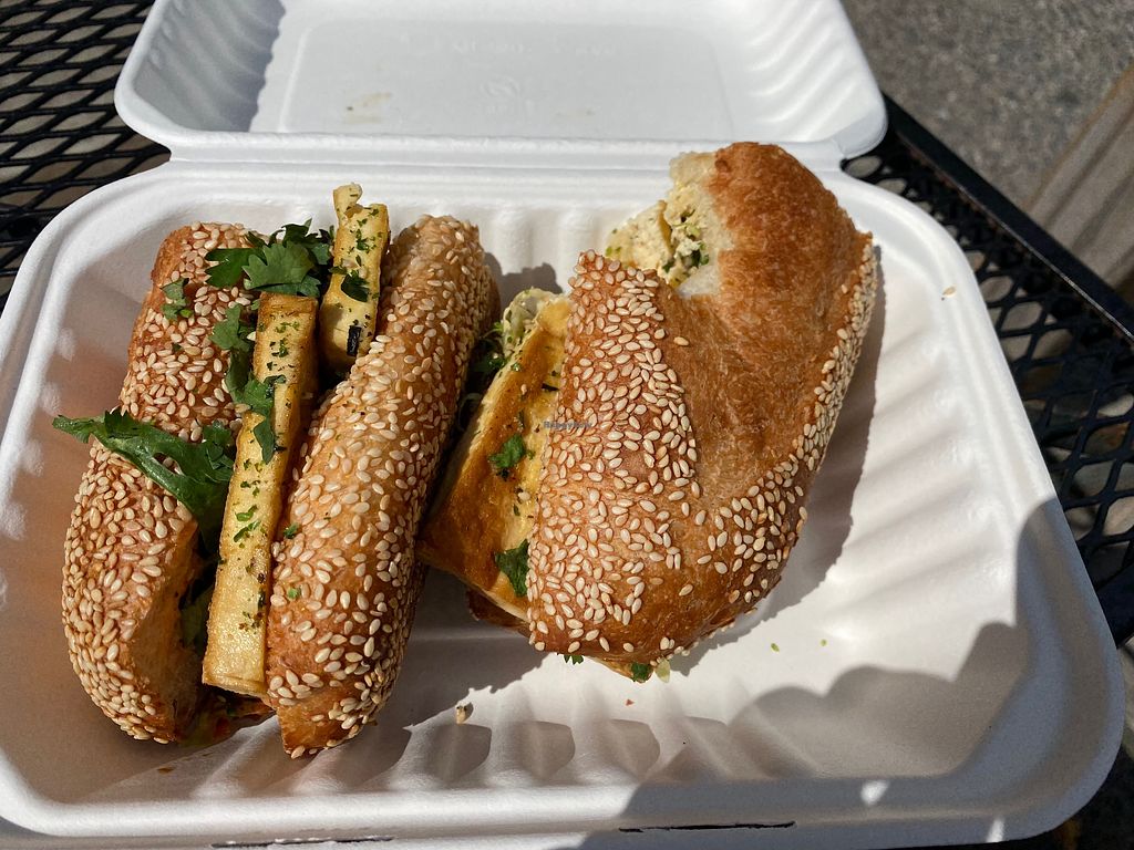 Read moreI was disappointed to return to this scratch bakery and find my go-to sandwich had been replaced!!! (I loved the Tofu Banh Mi!) I settled on the roasted eggplant sandwich (roasted eggplant, sun dried tomato pesto, halloumi cheese, zhoug sauce, lettuce, red onion, banana peppers). Veganized by omitting the cheese and swapped out the ciabatta for a sesame hoagie. The bread was soft and fresh and the eggplant was cooked well. I enjoyed the sandwich. May try the mushroom toast next time.