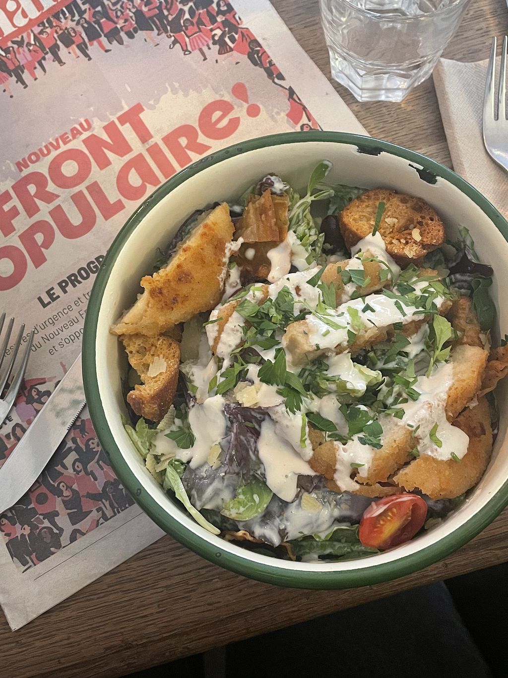 Chorizo Mac, potatoes, garlic bread, caprese salad