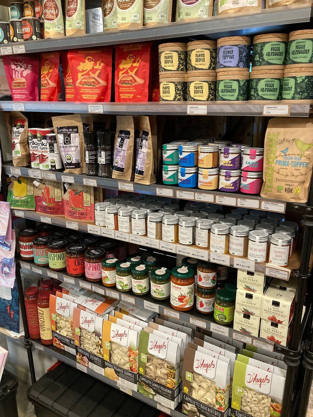 Totally vegan brunch and dinner restaurant situated in the front of a big vegan shop.