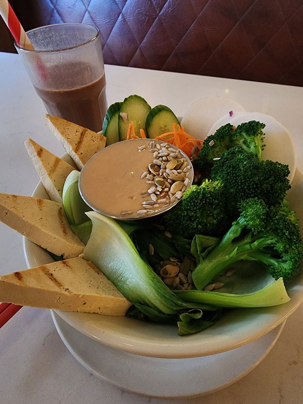 The menu was extensive - a true vegan gem with the right mix of healthy options and vegan comfort food. The restaurant itself was bright and airy. Our server was knowledgeable about ingredients and answered our questions in a most friendly manner. She made excellent recommendations. We loved the buffalo tempeh but ate it before we remembered to take a photo. The perfect place for lunch!