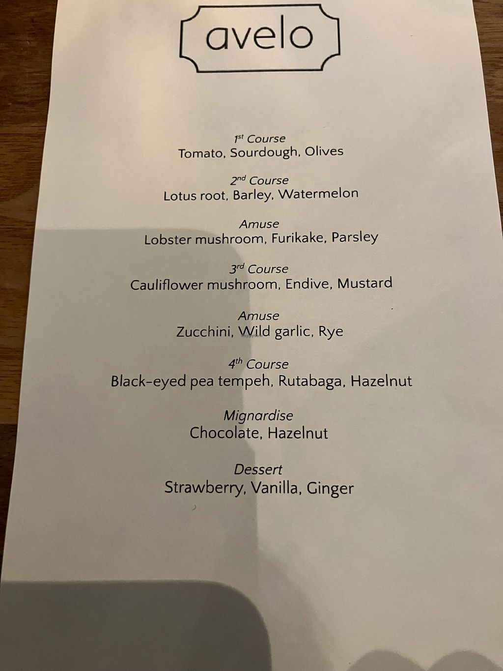 I loved my meal at Avelo, I've been lucky enough to experience several vegan tasting menus and Avelo's ranks right near the top. From the "dirt" garden dish to start to the pavlova to finish, everything was wonderful and the sauce work was among the best I've had at a vegan restaurant.