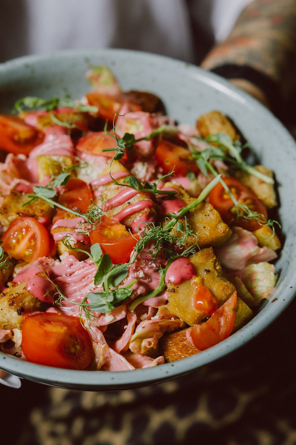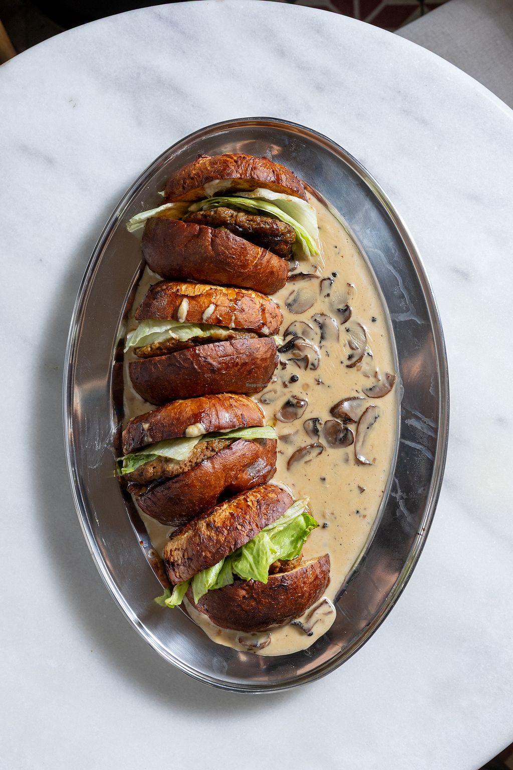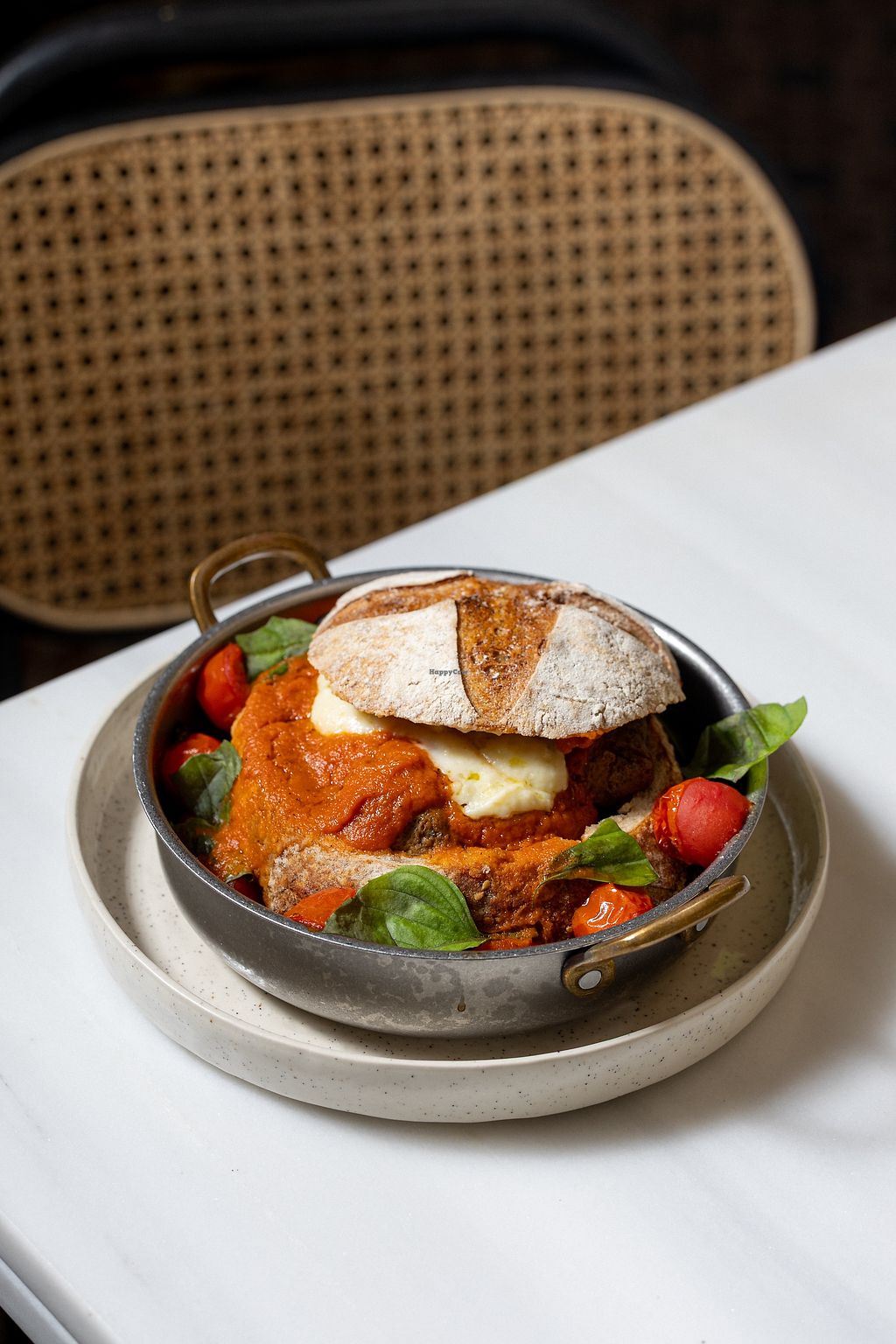 Crispy clubhouse sandwich with brioche bread, tofu, bacon, lemon mayo,…