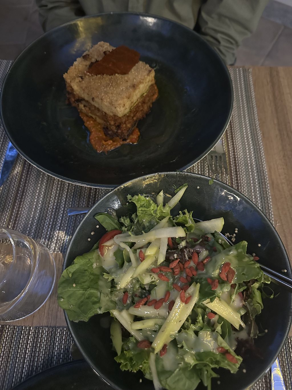 Read moreThere are several main course options on the six-course menu. I decided to try the vegan moussaka, as it was the first time I came across it in vegan form in Greece. I was very pleasantly surprised by the appetizers and dessert. The whole menu was tasty and balanced. Someone here mentioned that the menu left them hungry - I have to say that I ate to my heart's content and wasn't hungry until the next morning haha!