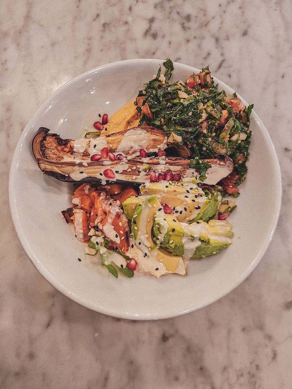 - Vegan salad (Baked eggplant, sweet potato & avocado) 140 sek