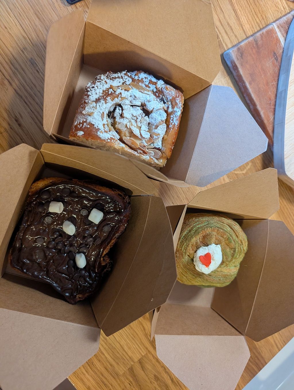 Wide selection of vegan pastries. Friendly staff. I had the pistachio cruffin which was very nice, and a cinnamon roll, which was ok.