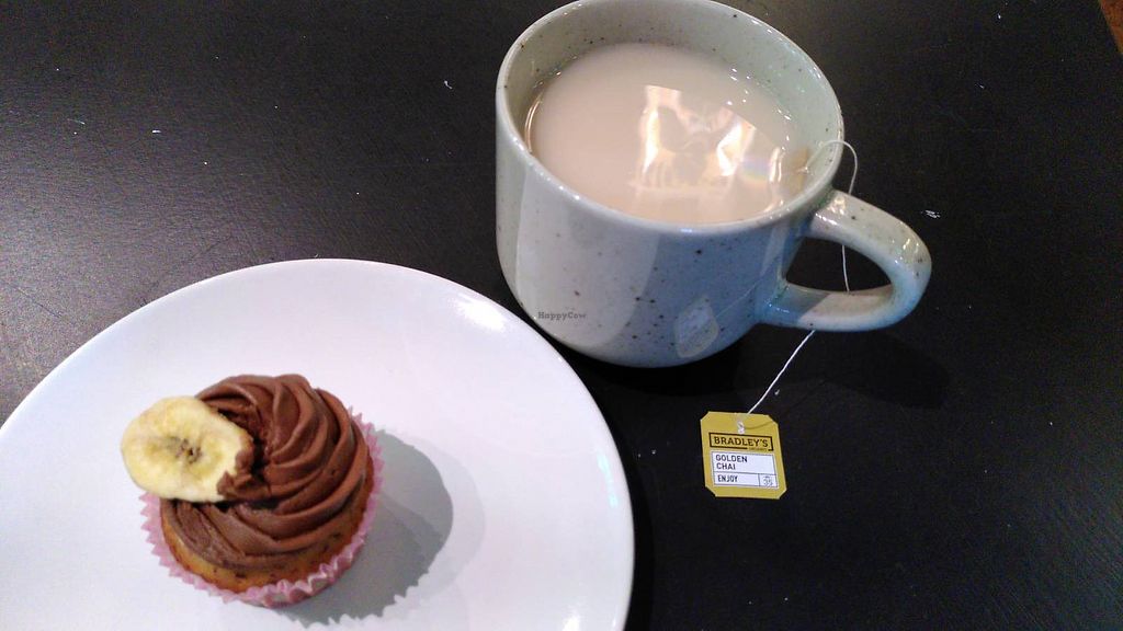 I had a delicious cupcake and a generously sized cup of chai tea with oat milk (optional extra). It's great that everything is vegan! I like that they have both a café and a bar in one, with their respective food and drink offerings.