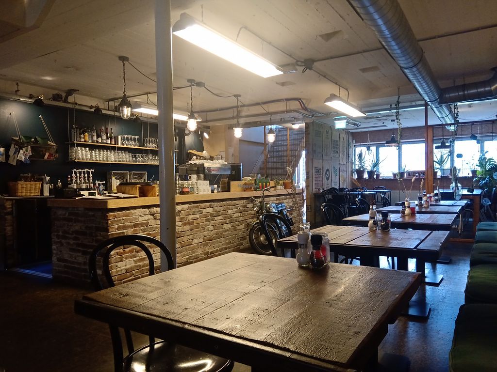 A very relaxed and informal all day (note that it closes rather early) restaurant with good, plant based food for a reasonable price (not cheap). They have a lot of creative dishes on the menu for breakfast, lunch and dinner. It also offers many choices to just have a coffee or a drink. It has an urban interior, which you have to love. It can be quite crowded and then it does get a little noisy, also because of the the not-so-great acoustics. Friendly and casual service.