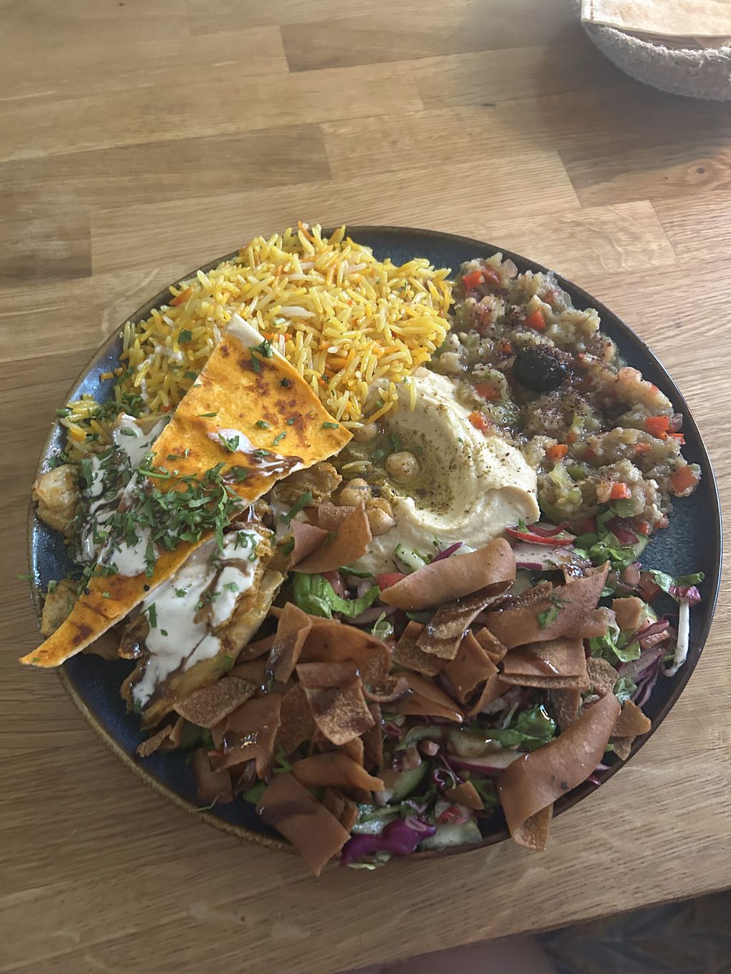 I ordered the vegan chef's plate. It was a delight. The Baba ghanoush was smoky perfection and the falafel had the most amazing texture, but every element was great. Just really fresh and delicious food, and a generous portion. A little on the pricy side.