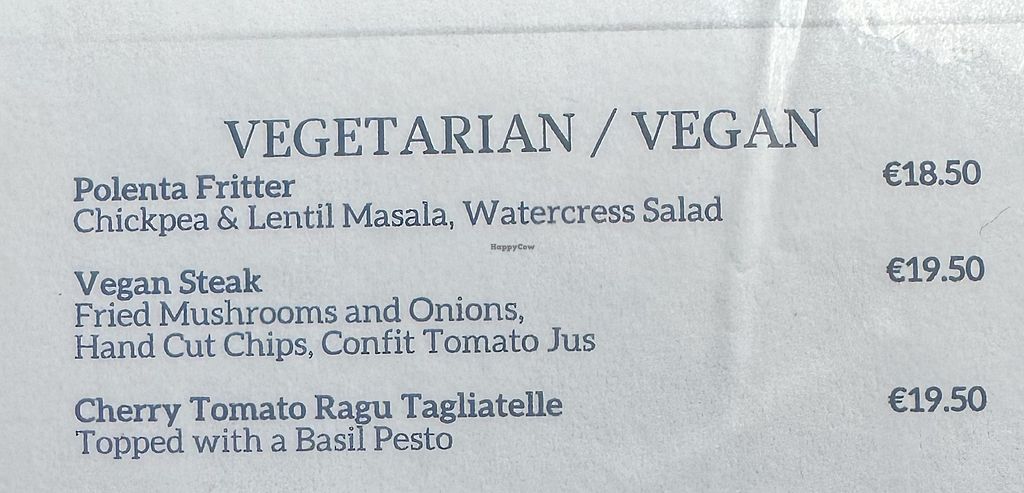 Pros: 3 Vegan options for mains , Vegan Dessert option, Excellent staff