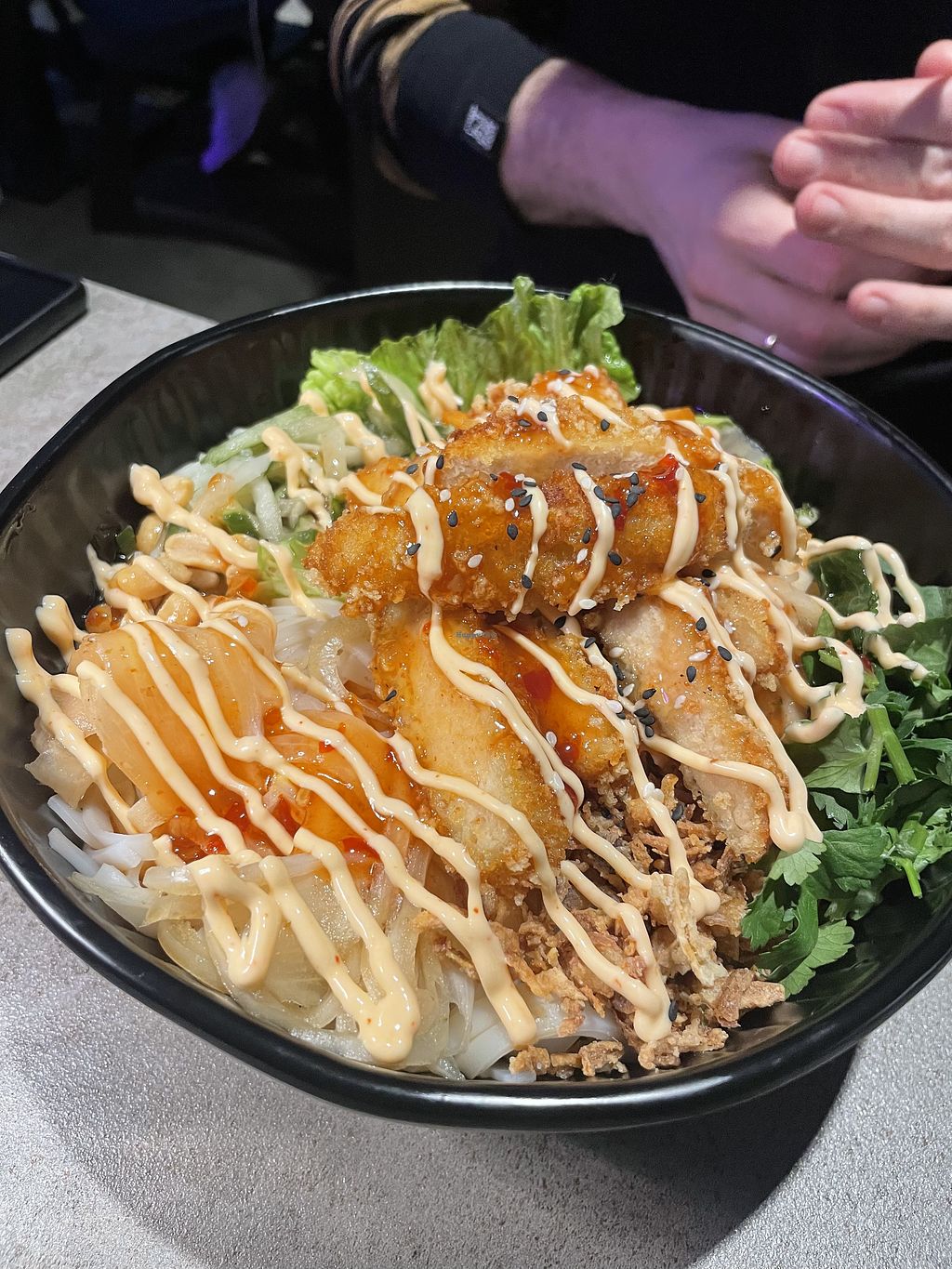 I enjoyed my bowl and luckily, it was obvious that the chicken was vegan haha, even though I haven’t had chicken for over 15 years 🤔