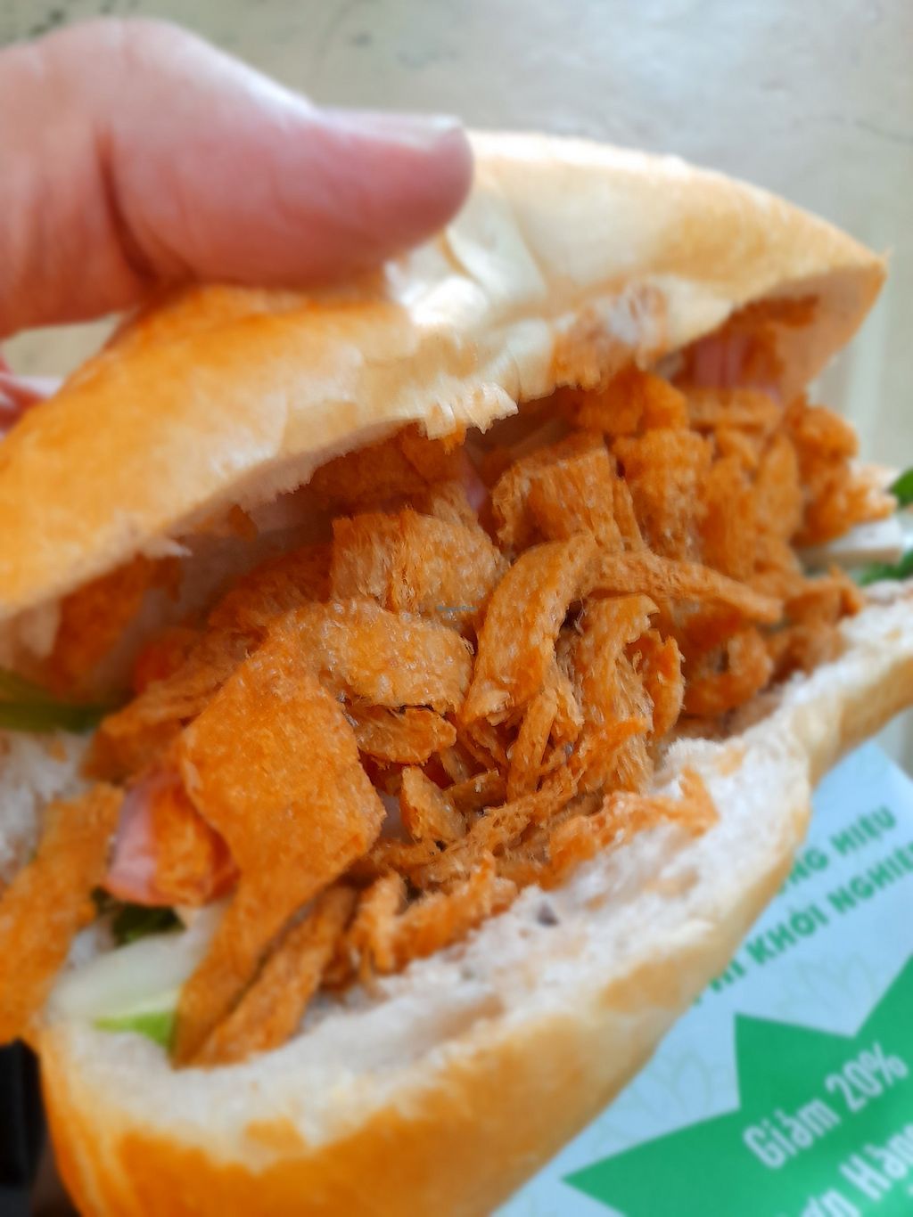 A mostly vegan vegetarian banh mi stall. Mayonnaise is the only non-vegan ingredient. Take away only. No English spoken and no menu in English. Has pictures of the various banh mi on the stall with prices. All options of banh mi are vegan (no mayonnaise). Open Mon-Sun 5:30am-10:30am.