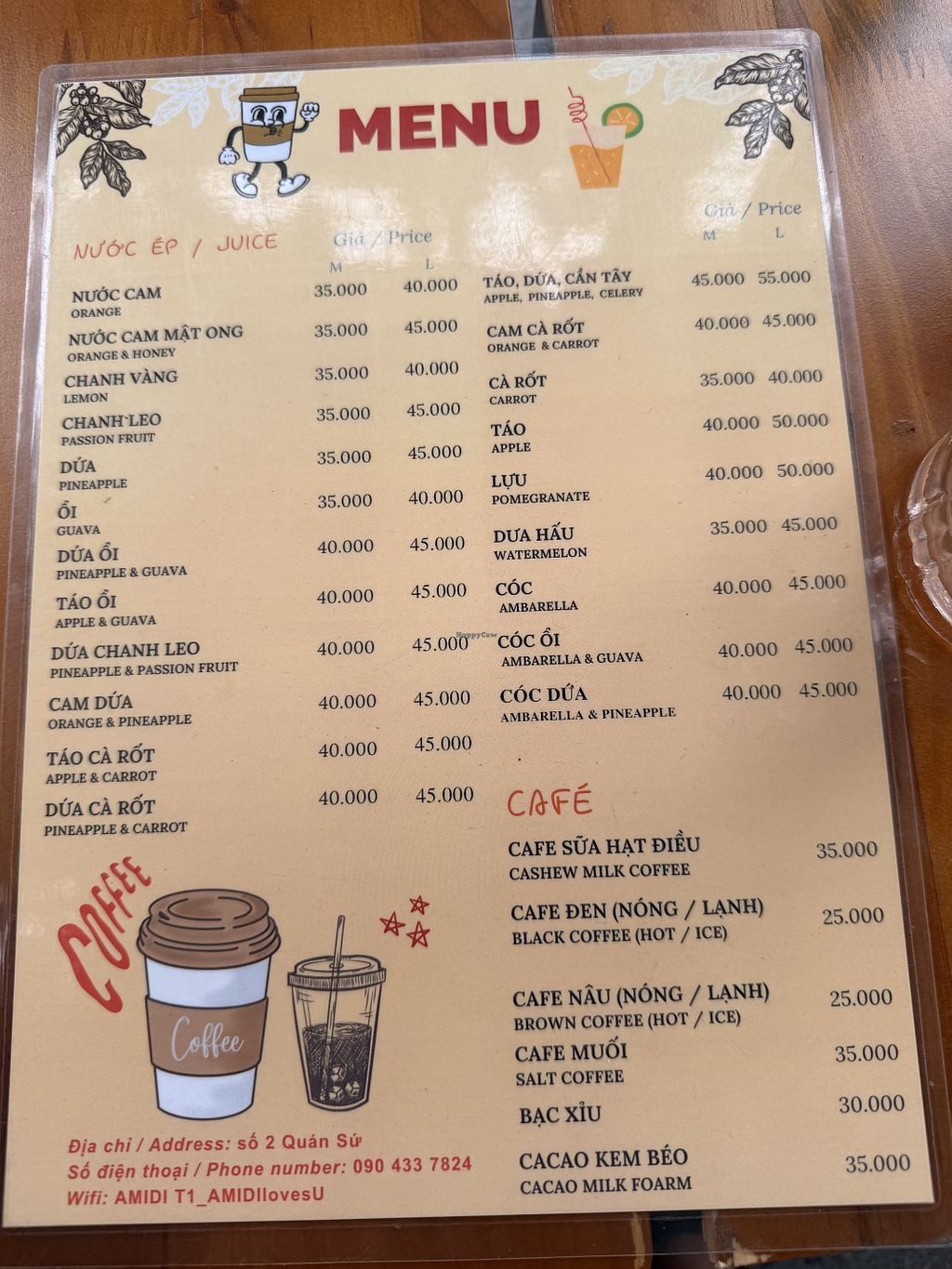 Only one food option on the menu and that’s the most delicious garlicky vegan banh mi ever! It’s not huge but it’s absolutely amazing and only costs 25k, so getting 2 is definitely an option… 😆 Lots of drink options including smoothies, juices and coffee.