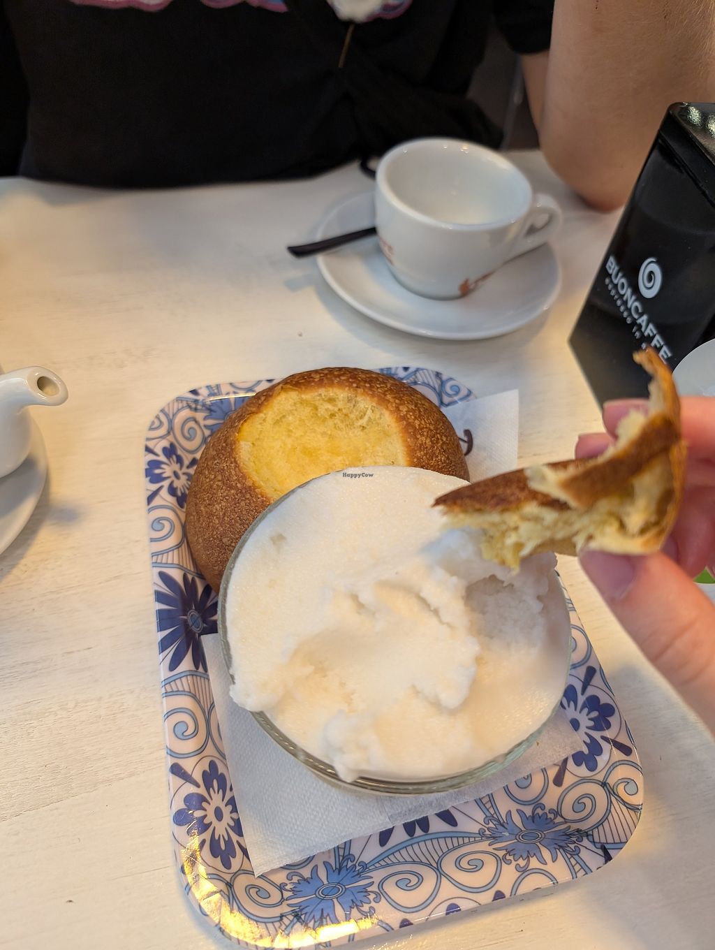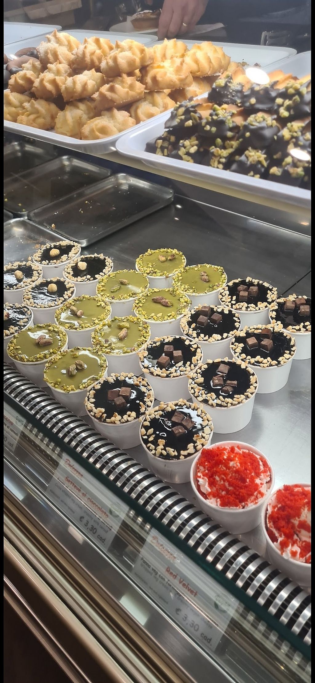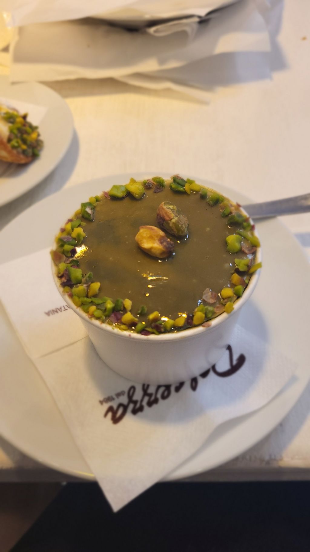Ordered a Croissant/Cornetto filled with chocolate (so much filling and a very deep chocolate flavour) as well as other pastries, which were just as delicious. My friend had one of their hearty options, and she described it as perfectly filling without it being too oily. Gelato (Pistachio and Strawberry) was also extremely good (maybe not the best wafer), the first time i ever had vegan pistachio ice cream, and it was a wonderful experience. Would definitely recommend!