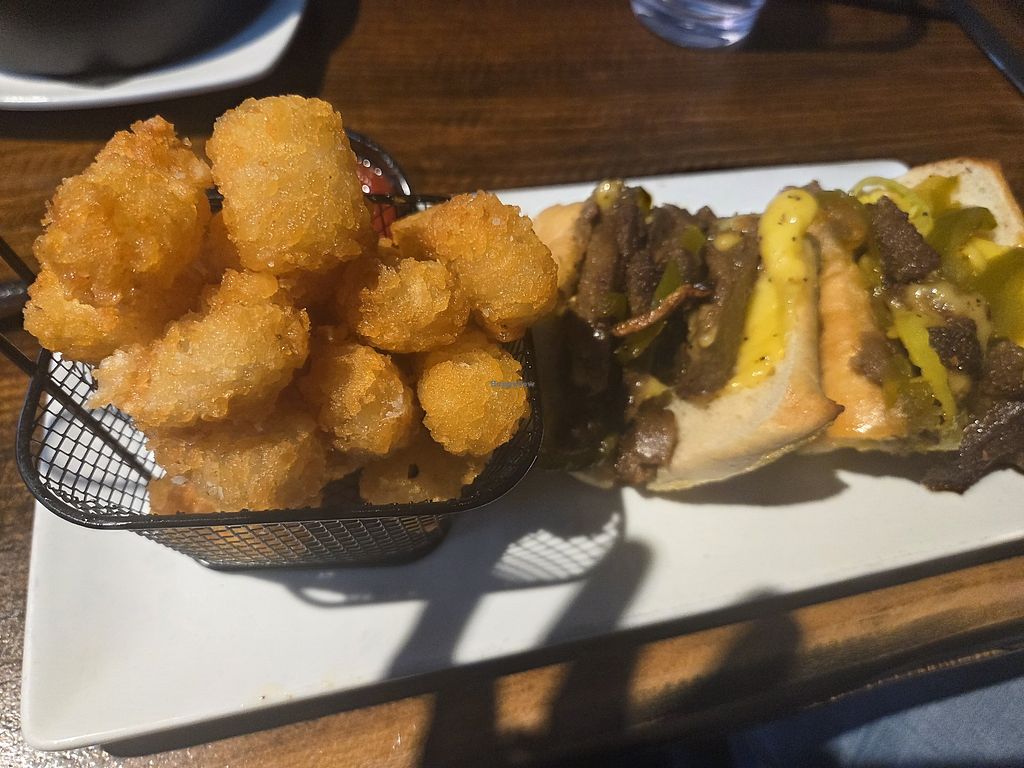 Lots of hidden fees. The cheese steak is marked at $22, but to buy one, I had to pay over $30 for takeout. The cheese steak was medium to medium small in size. It was decently satisfying, not great, not particularly good. The mandatory inclusion of fries it came with were small in size and exceptionally good, I got the sweet potatoe version.