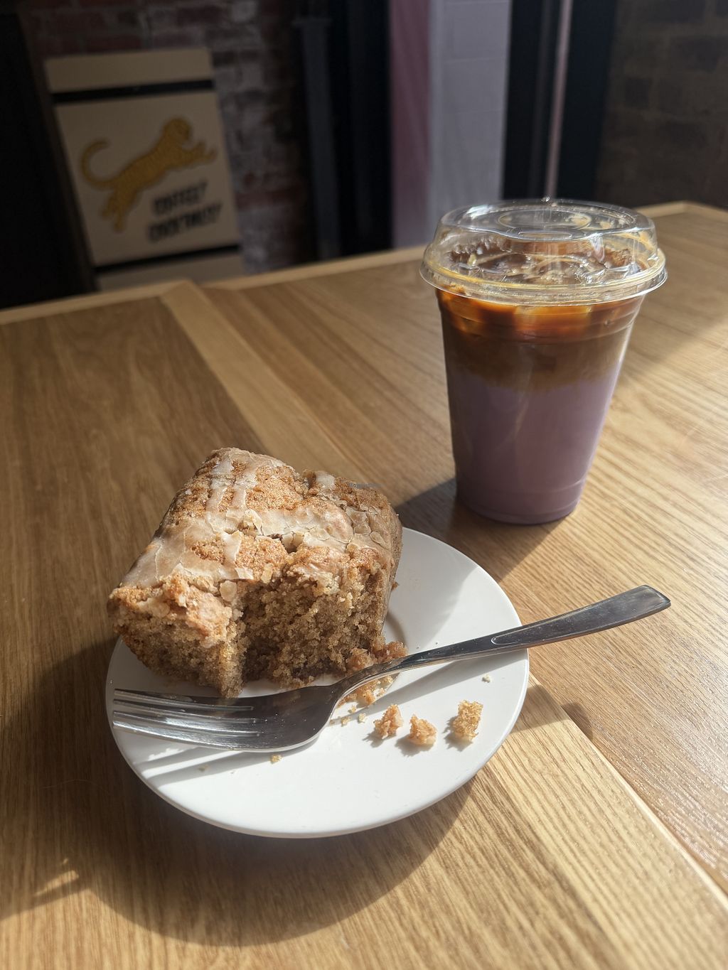 They have an absolutely delicious vegan coffee cake!! 🤤