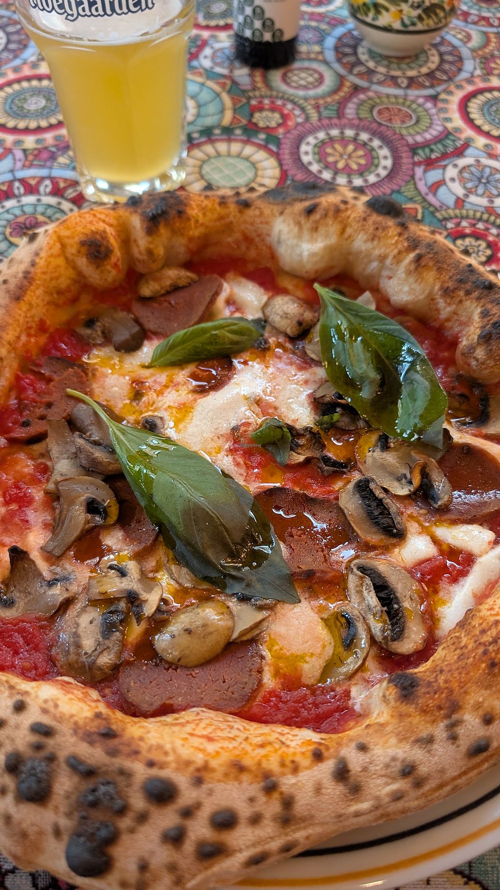 Excellent pizza with vegan mozzarella and chorizo from The vegan butcher. Really tasty!!