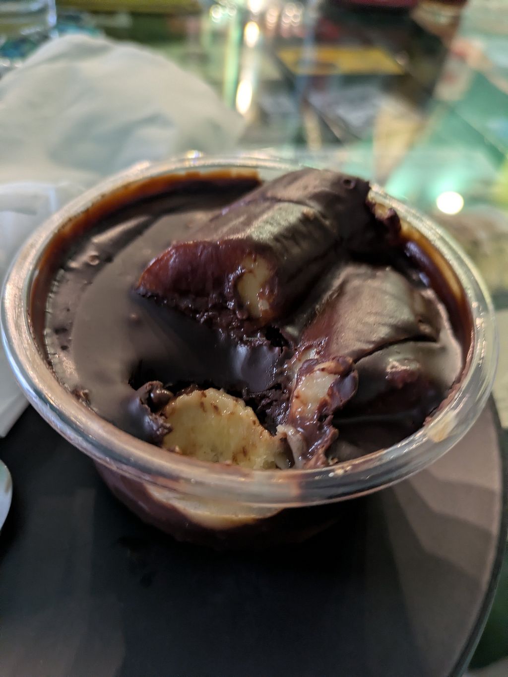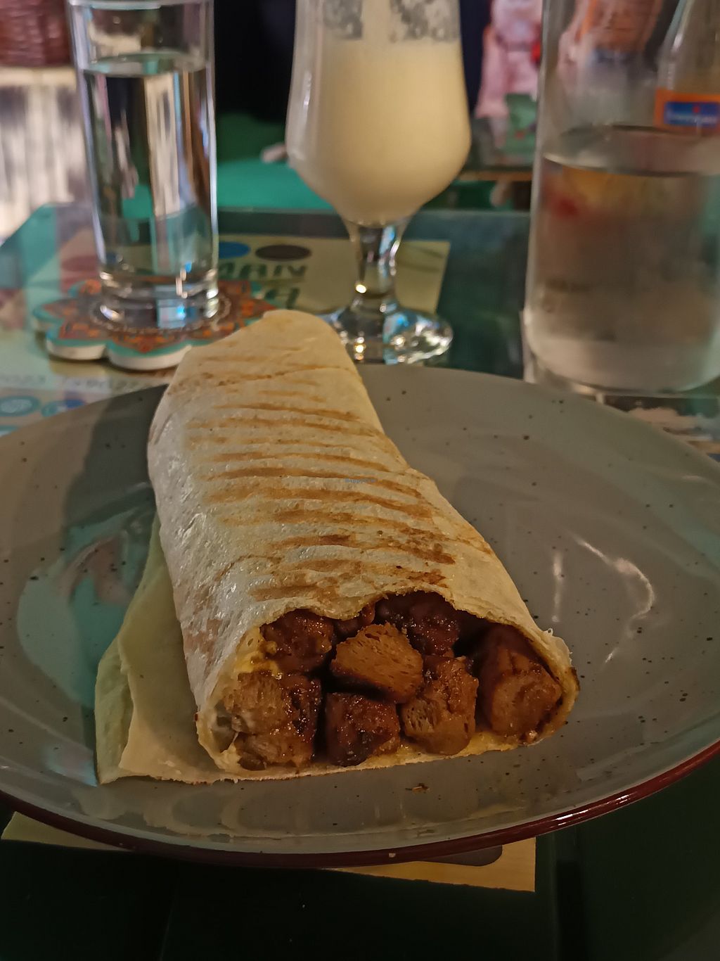 Abbiamo preso una piadina da dividere e uno shake pina colada a ben 17 jod (più di 20€) non lo consiglio, meglio andare a mangiare altrove in qualche locale con cibo tradizionale.