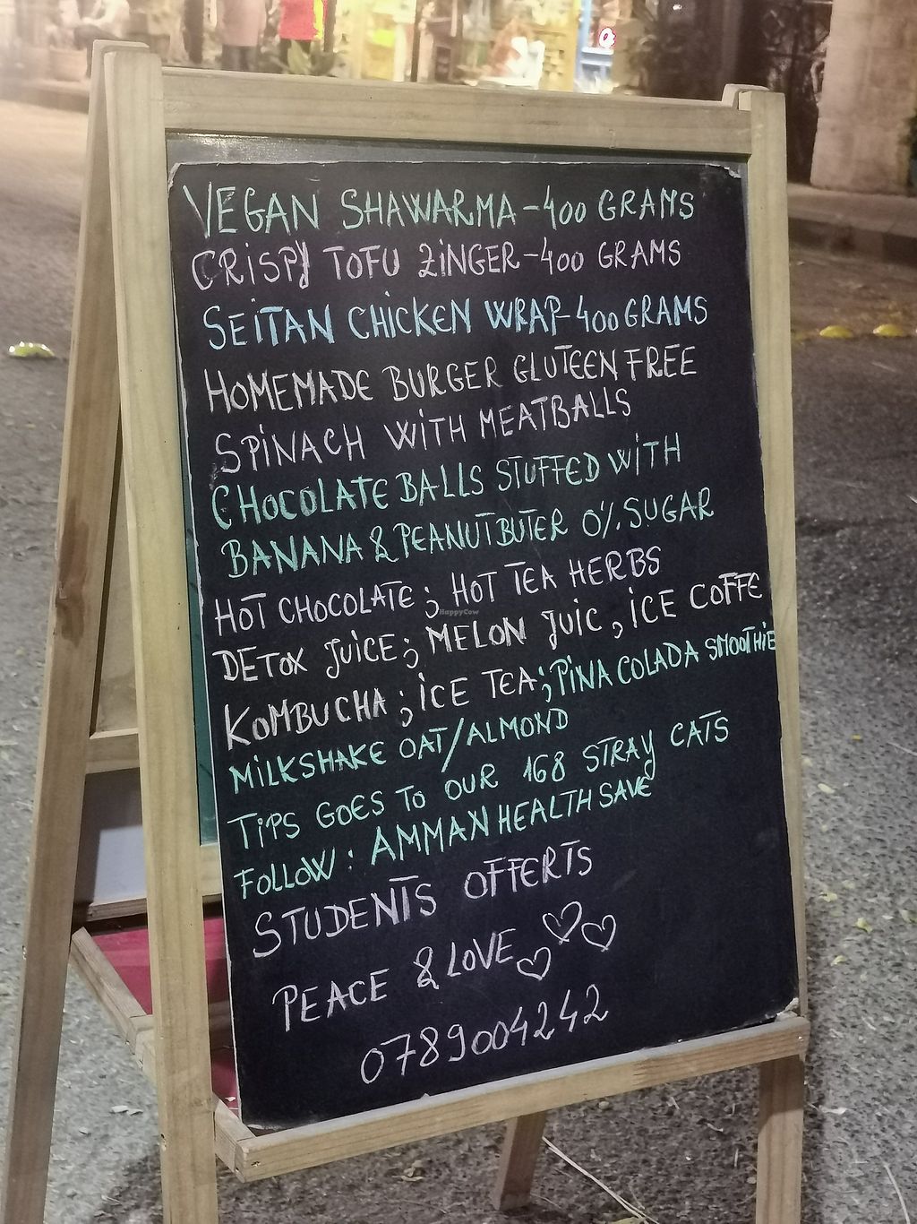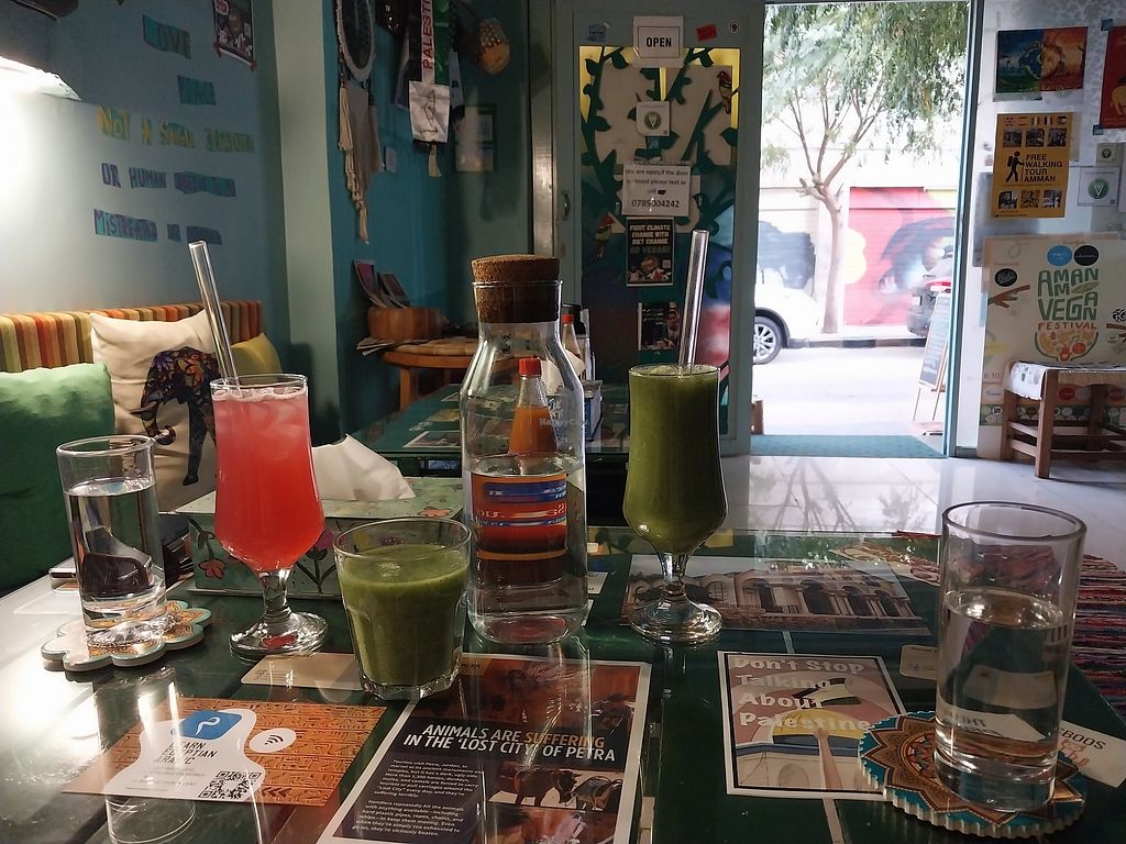 Very special vegan place in Amman, reflecting a very active commitment towards a more sustainable world and against animal cruelty. Suggest everyone pass by, try their delicious food and support their cause.
