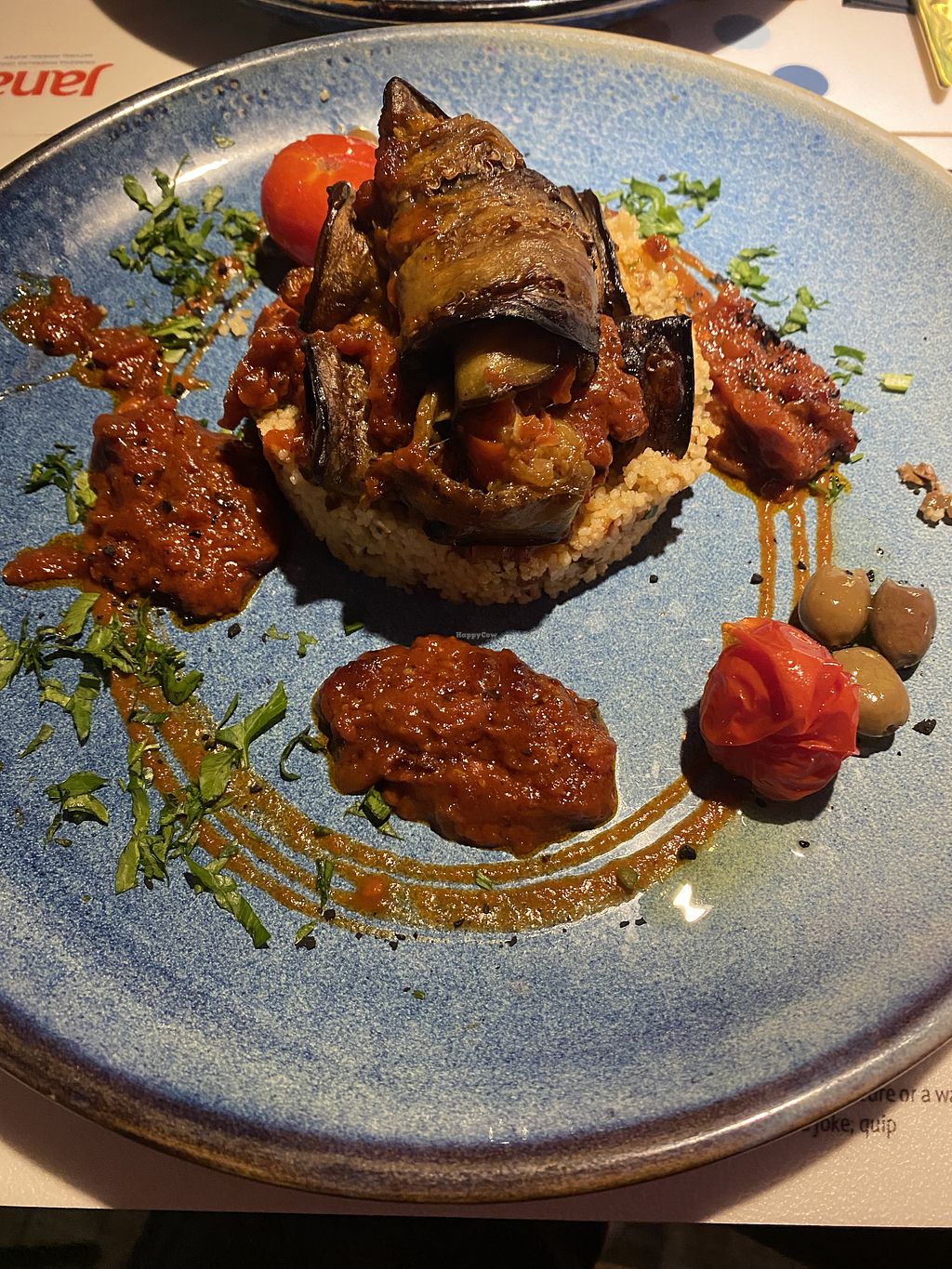 They have a vegan risotto, burger, wok, couscous…. And one dessert! It was very tasty and the waiters were so nicee!!