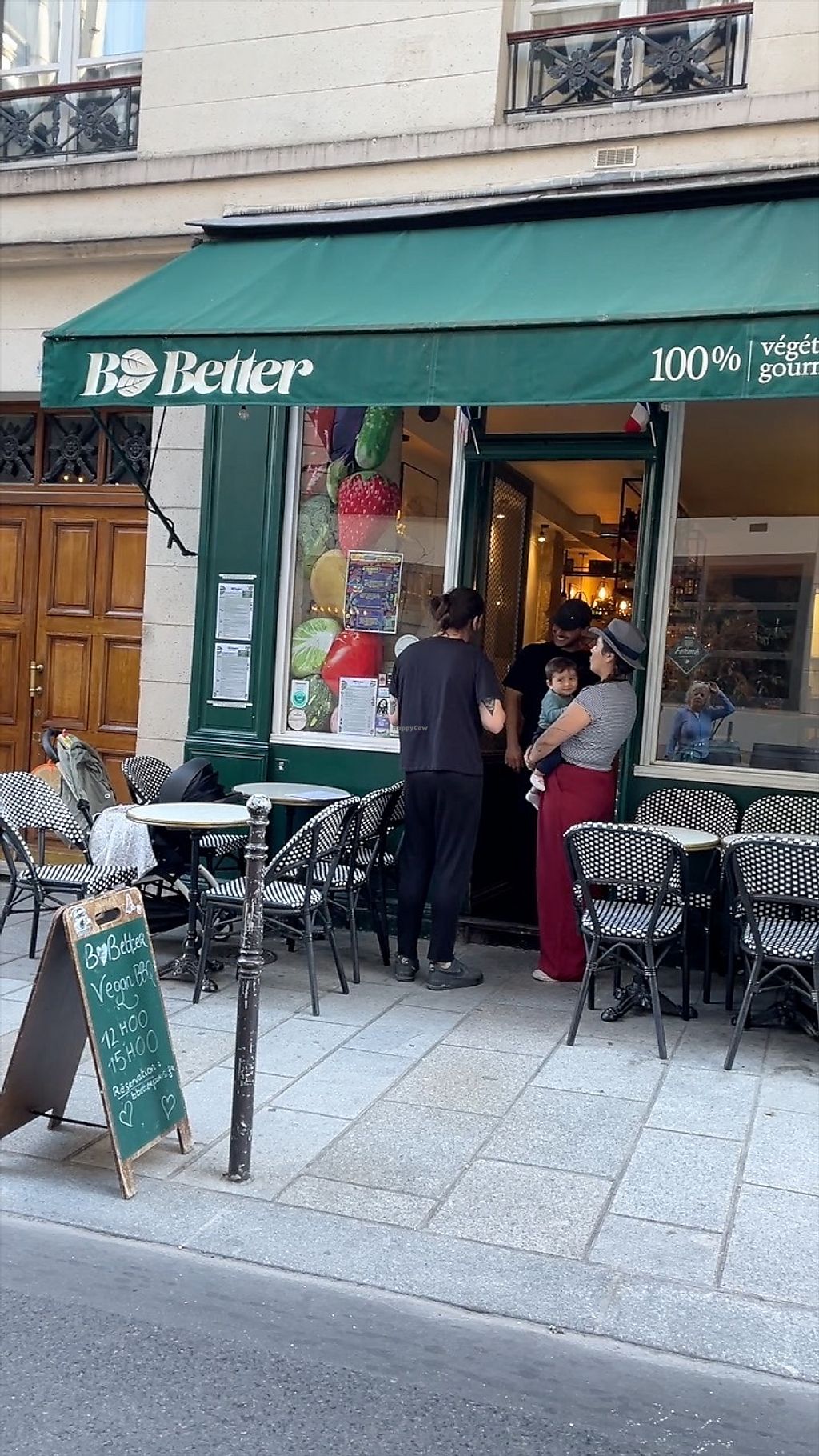 100% végétale!!! 100% vegan!!! Located in the 4th arrondissement in Paris, B.Better offers up 100% plant-based seasonal tapas, tacos, burgers, and desserts. Located on a quiet Parisian street right next to Le Village Saint-Paul in Le Marais, this charming sidewalk cafe is perfectly situated for people-watching in a neighborhood that began in the 13th century. With many small plate offerings, we sampled their “Buffalo” cauliflower with its fantastic dipping sauce and their marinated, barbecued broccoli skewers that were cooked perfectly. The mushroom tacos were incredibly flavorful and complex. The smashed baby potatoes delighted with their beyond-delicious vegan “Béarnaise” sauce. We love, love, loved the tempura green beans and the candied eggplant. And, the seasonal mushrooms flambéed with Cognac, shallots, vegan garlic “butter” were unbelievably rich in the French tradition. We ended our Parisian vegan meal with B. Better's fig crumble and the BBQ-roasted peaches, both beautifully presented and delicious. We received excellent and attentive service, too. We cannot wait to go back to try the things we missed on the menu. Merci, B.Better!!!!