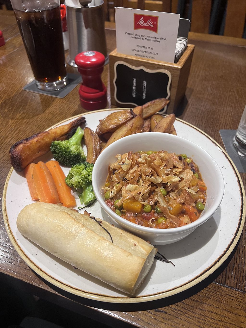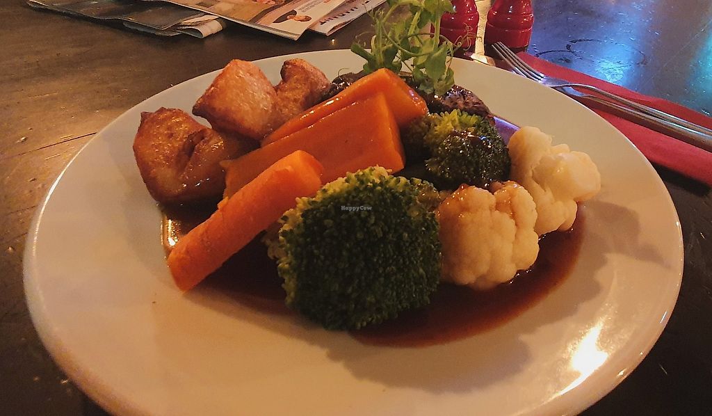 Serves meat, vegan options available. Part of The Market Town Taverns chain. Offers a few marked vegan dishes on the menu such as an open aubergine sandwich, falafel burger, Sri Lankan curry as well as chocolate and orange ganache for dessert. Has plant milk for tea and coffee. NOTE: Reported March 2024 to have limited vegan options – please send updates to HappyCow. Open Mon-Thu 11:30-23:00, Fri 11:30-00:00, Sat 11:00-00:00, Sun 10:00-23:00.