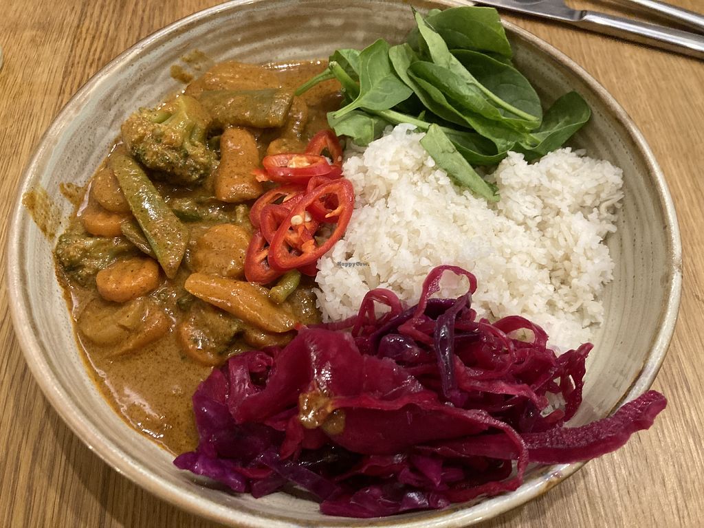 Read morePros: Peanut curry great, The vegan salad dressing a must try, Big portions.