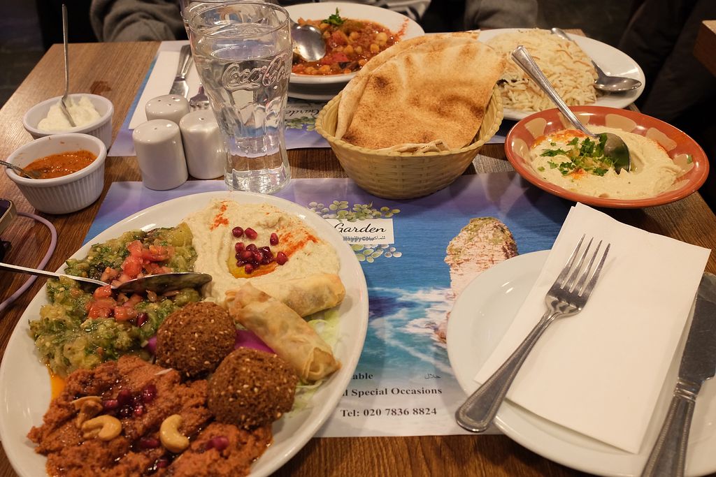 Serves meat, vegan options available. Lebanese restaurant offering a well labelled menu with all allergens listed. Vegan items include hot & cold mezze, salads, lentil soup, desserts and more. Open Mon-Sat 11:00-23:00, Sun 11:30-23:00.