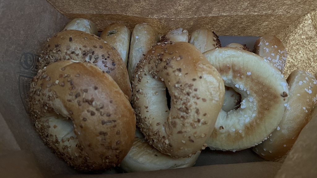 Est. Nov. 2021. All-vegan deli offering fresh bagels, bagel sandwiches, and various prepared foods. Has vegan corned beef, chik'n, and lox. Non-veg turned vegetarian in 2020 and in turn, turned all-vegan in 2021. Open Mon-Sun 8:00am-3:00pm.