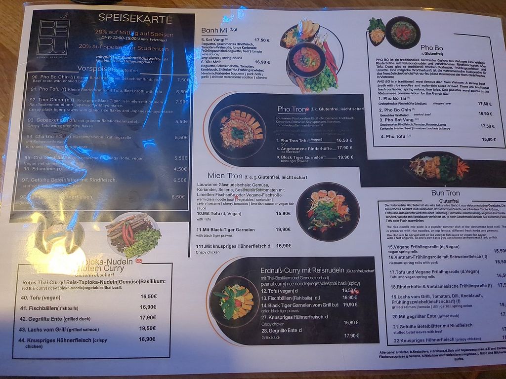 Serves meat, vegan options available. Vietnamese street food restaurant offering clearly labeled vegan options, such as udon tofu, bun tron with spring rolls, rice noodle salad with tofu, and pho tron tofu. Student discount available as of March 2023. Open Mon-Sat 12:00-15:00, 17:30-22:30, Sun 12:00-12:30.
